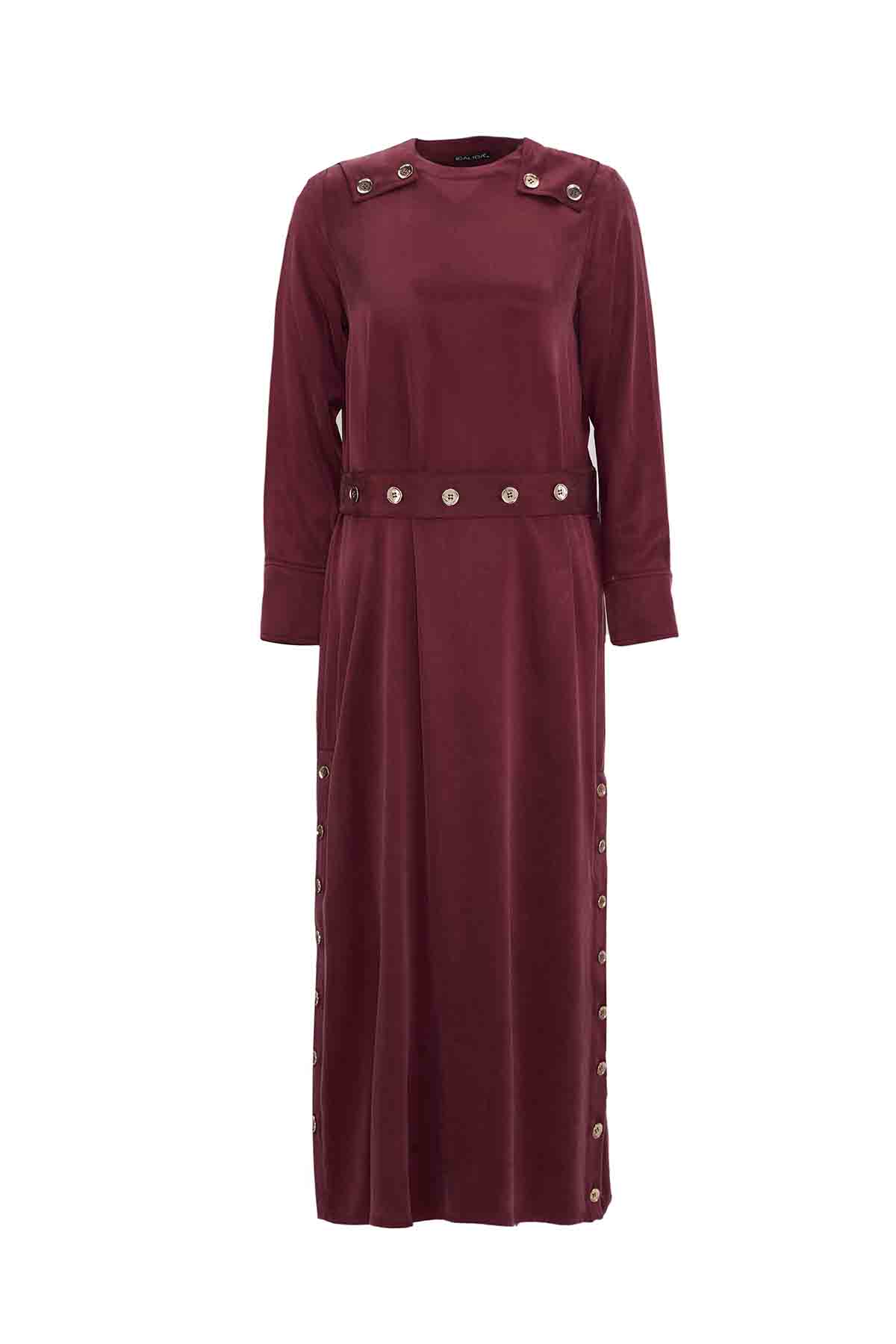 Solid Color Dress with Button Detail