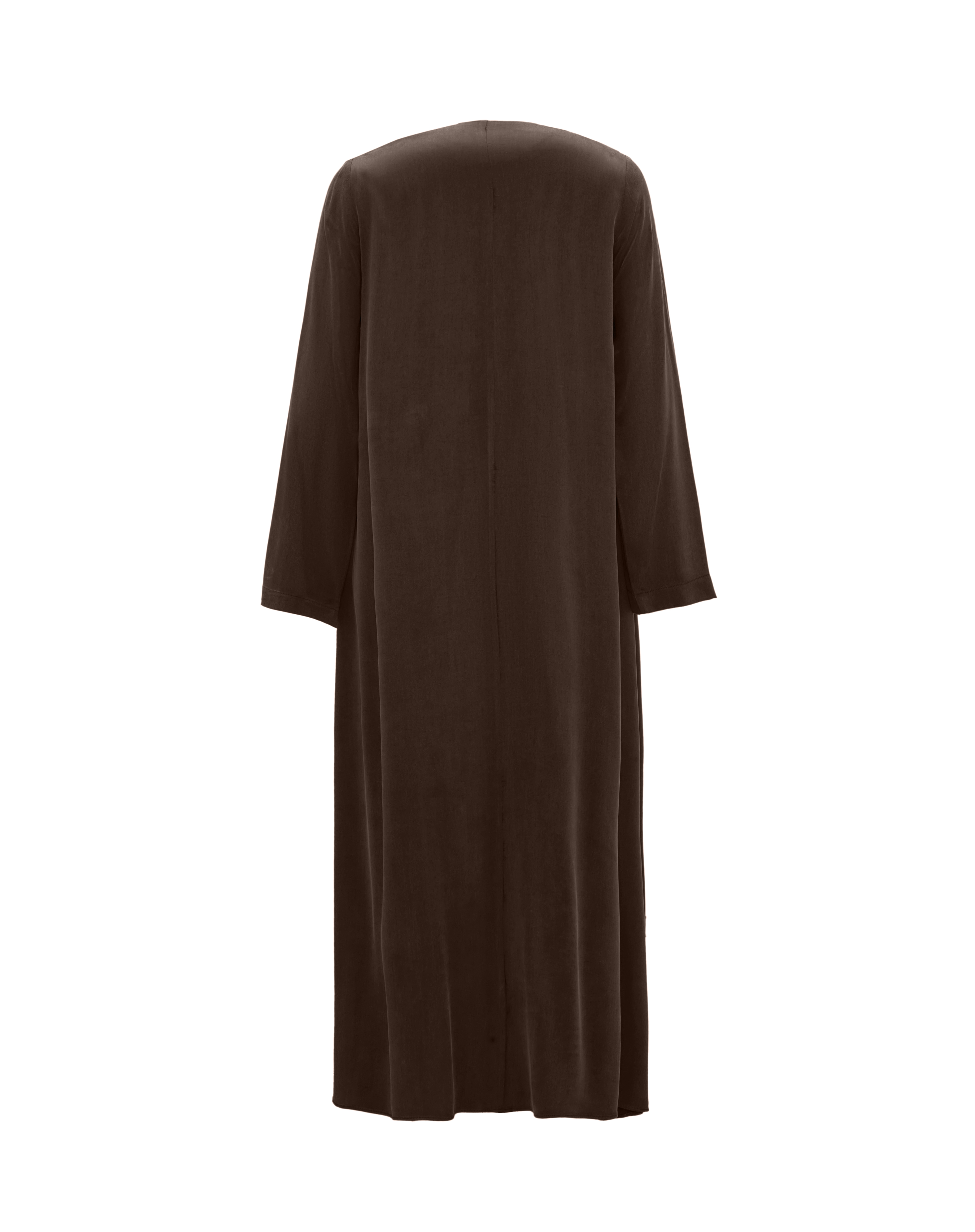 T26K-4021 Kalın V Yaka Düz Renk Elbise TAUPE