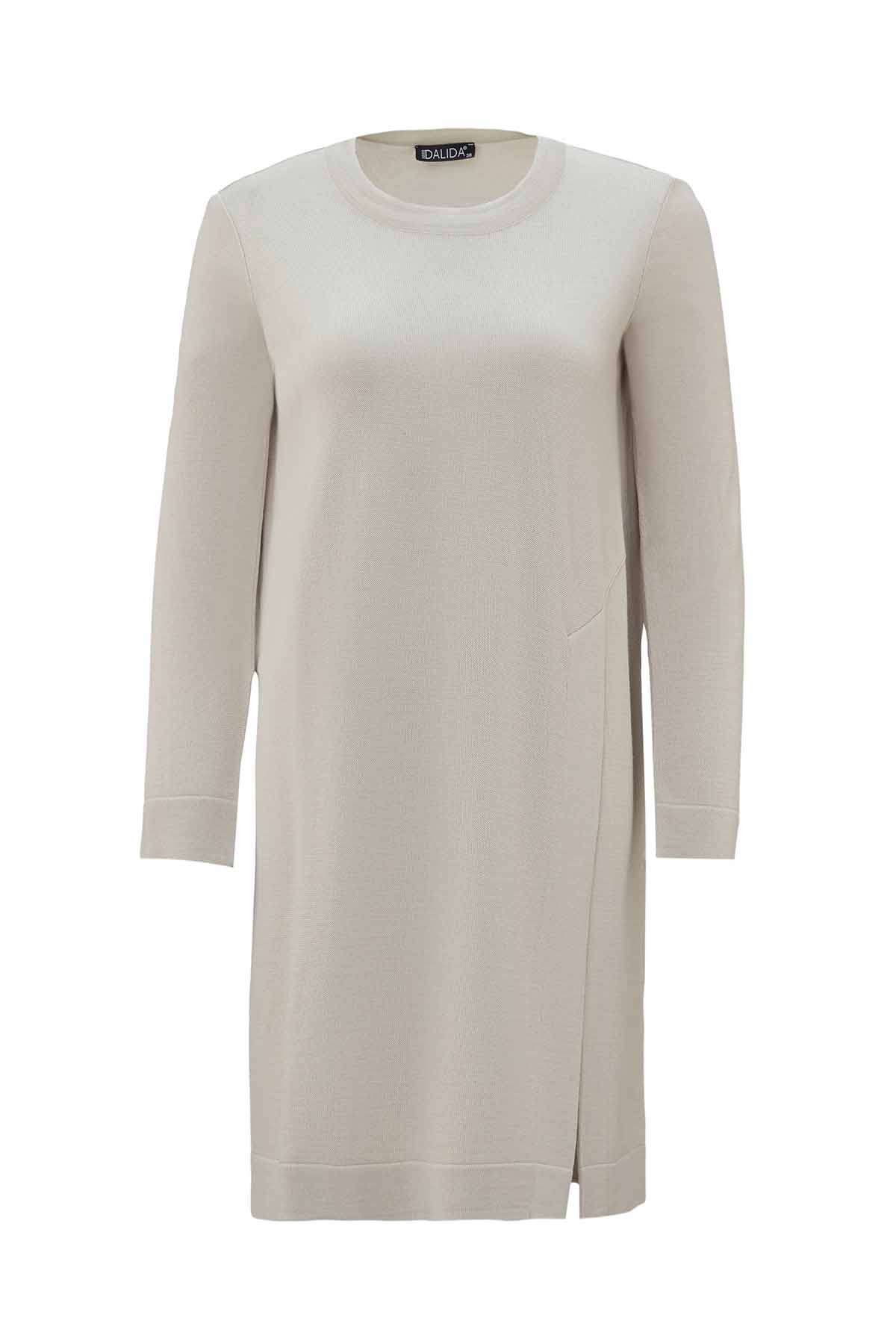 T26K-6008 Yırtmaç Detaylı Triko Tunik ELSA-STONE