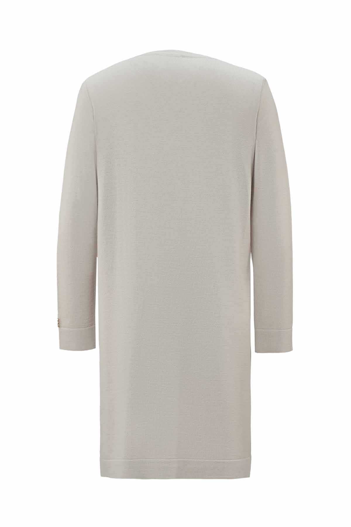 Önü Yırtmaç ve Tiktak Detaylı Triko Tunik Stone