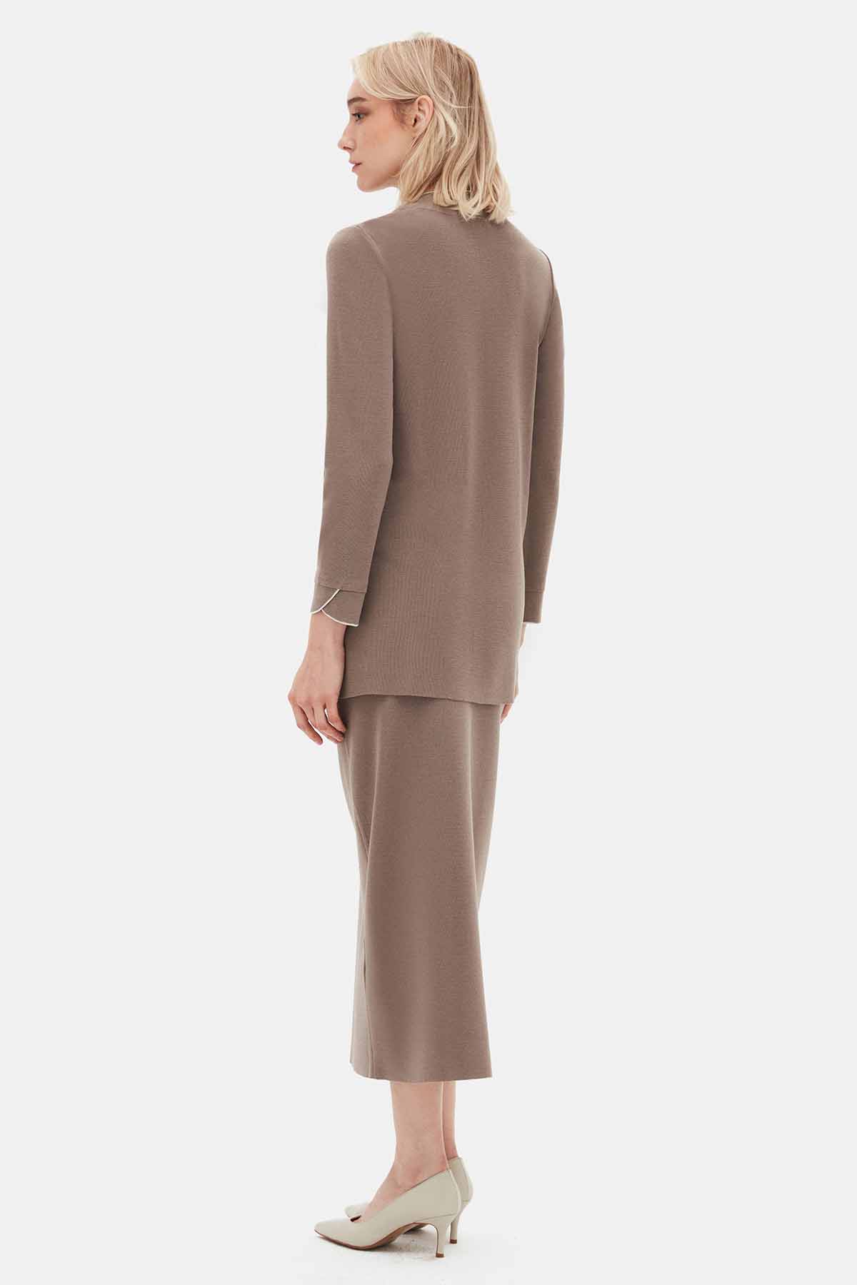 T26K-6013 Yaka ve Bilek Detaylı Triko Tunik CAPRI-MINK