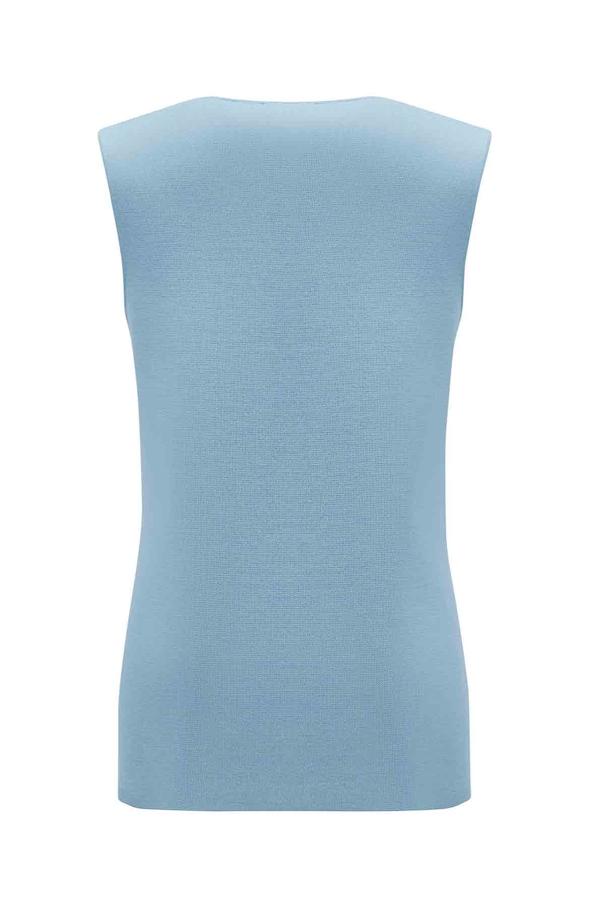 T26K-6014 Yaka Detaylı Kolsuz Triko Tunik NERVİ-BLUE