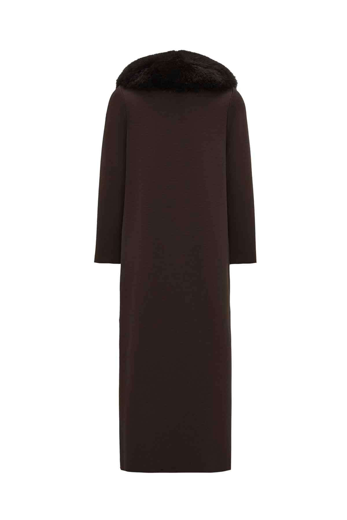 T26K-8001 Yakası Kürklü Uzun Kruvaze Triko Ceket DARDO-TAUPE