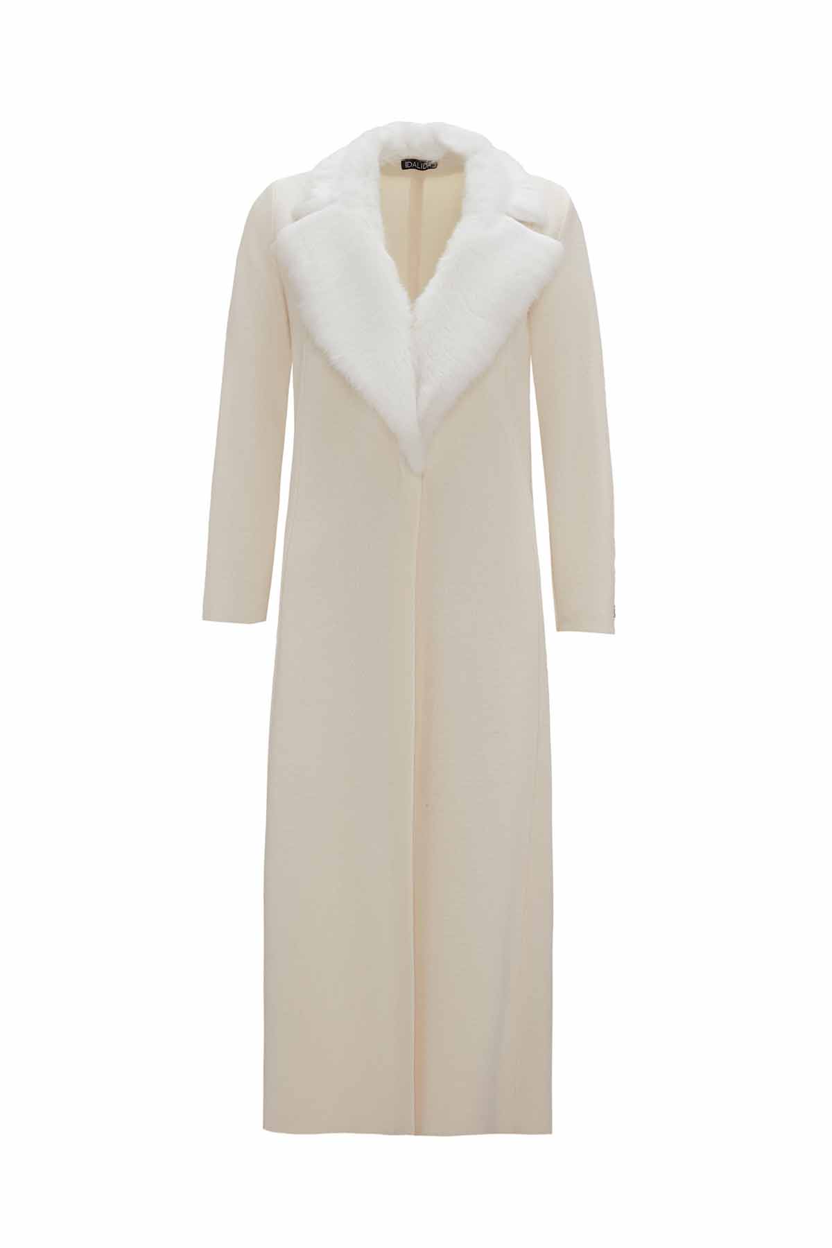 T26K-8003 Yakası Kürklü Ekru Ceket