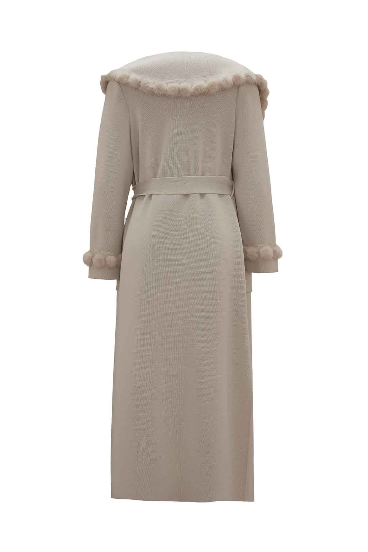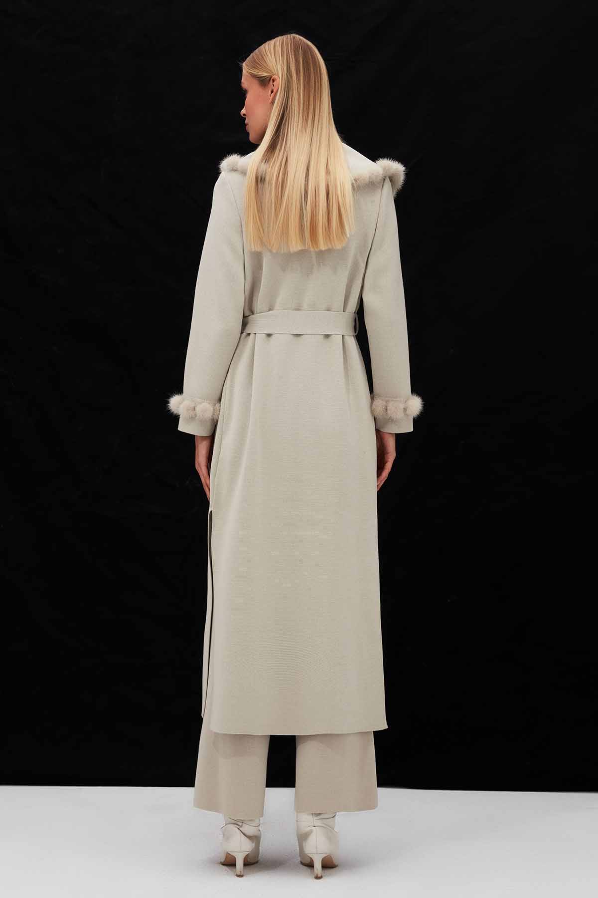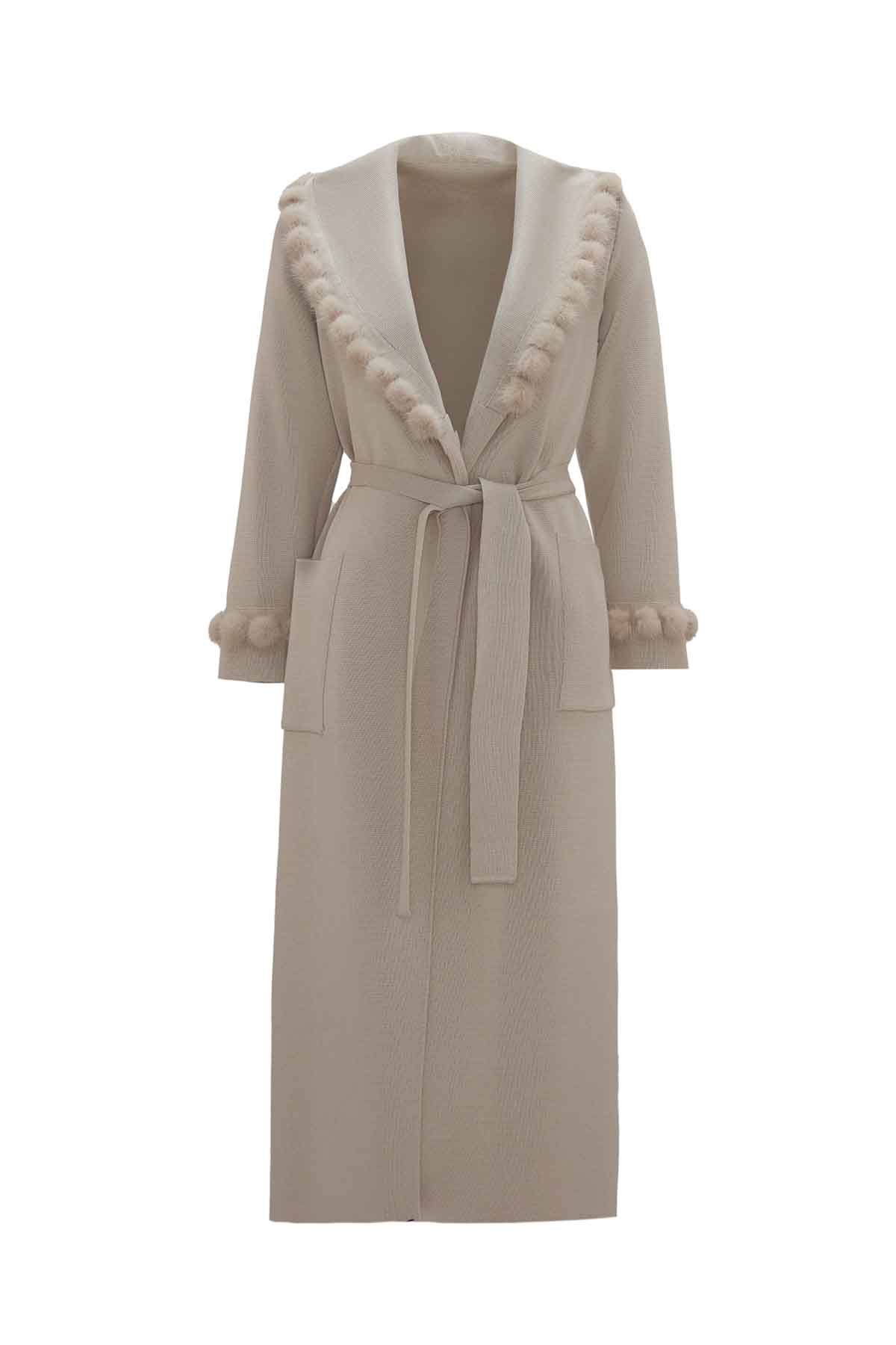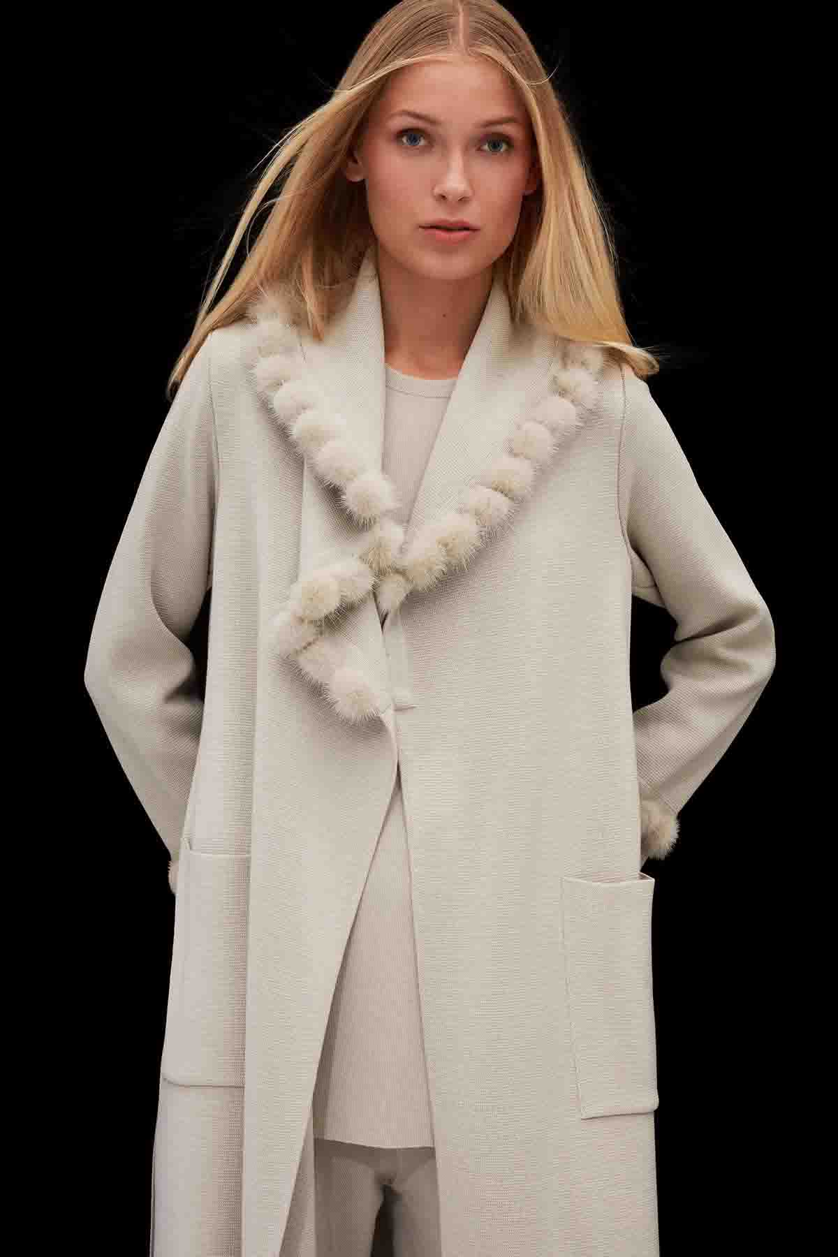 T26K-8004 Ponpon Kürk Detaylı Uzun Hırka ELSA-STONE