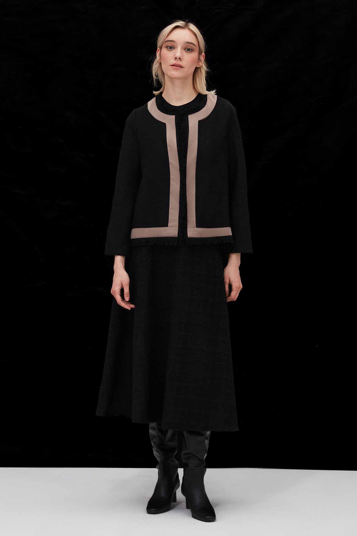 T26K-8205 Püsküllü Tüvit Kısa Ceket BLACK