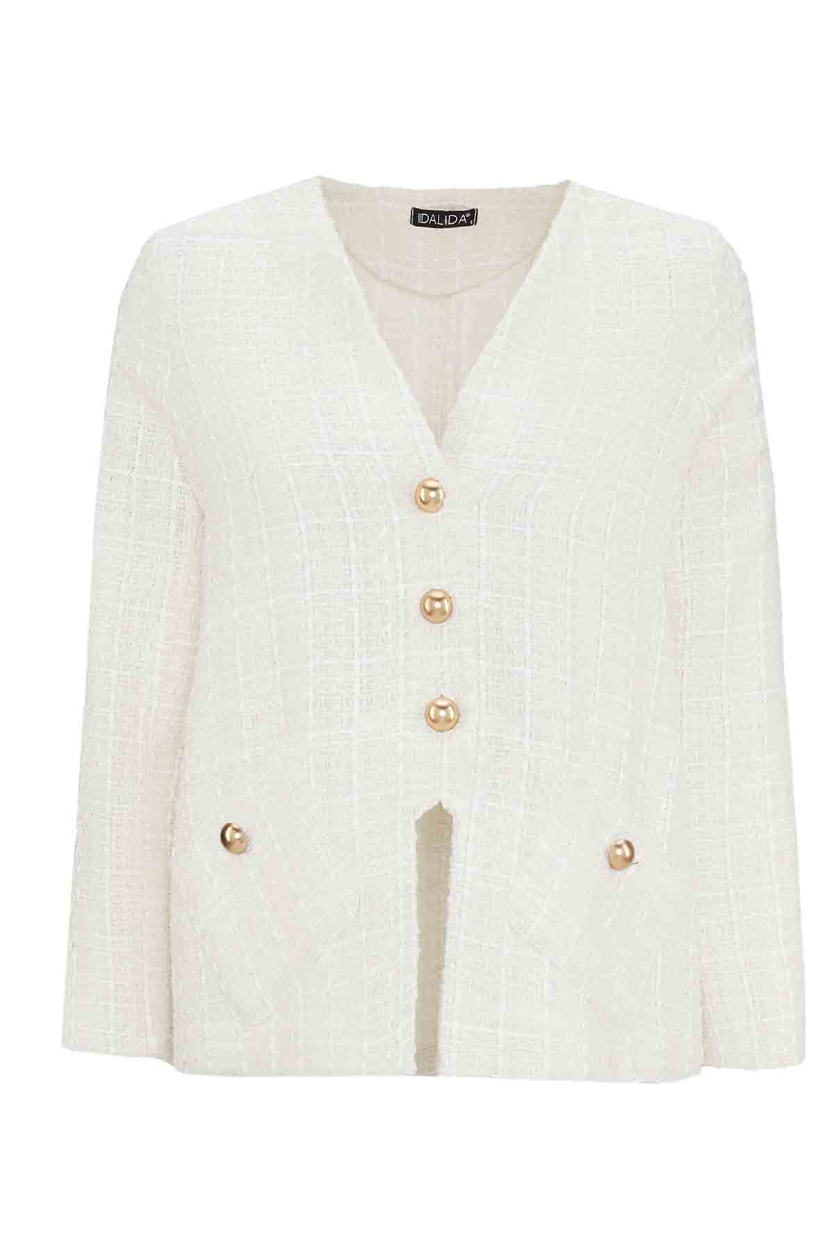 T26K-8208 V Yaka Tüvit Ceket EKRU