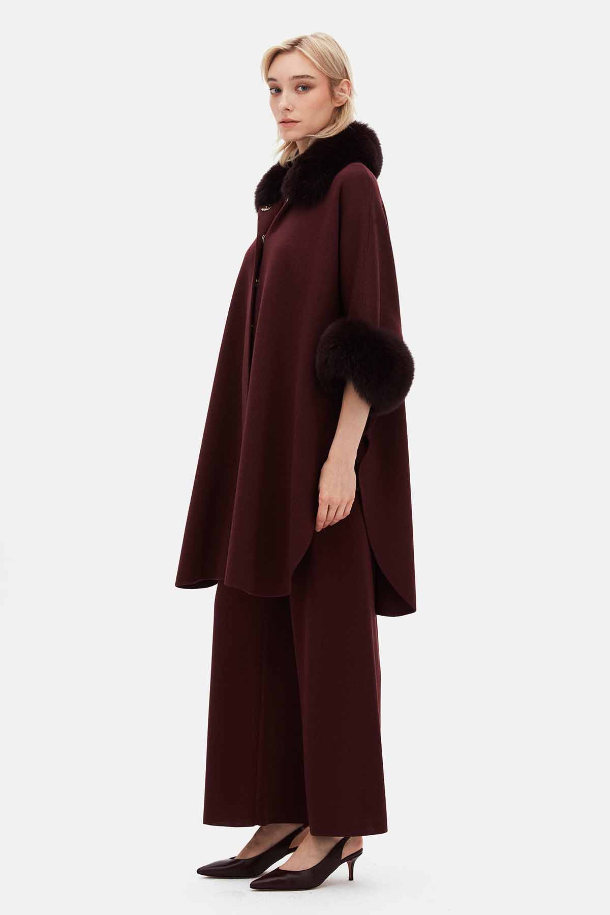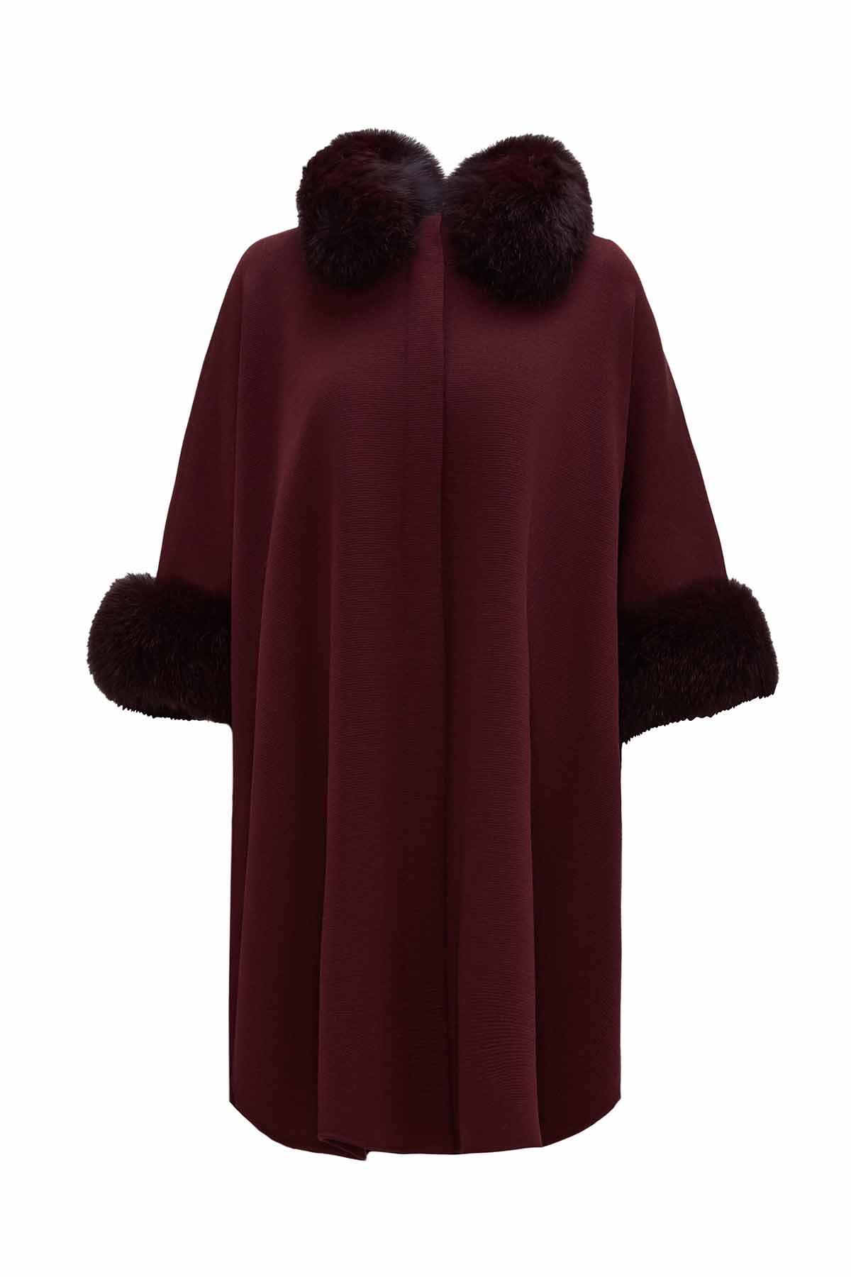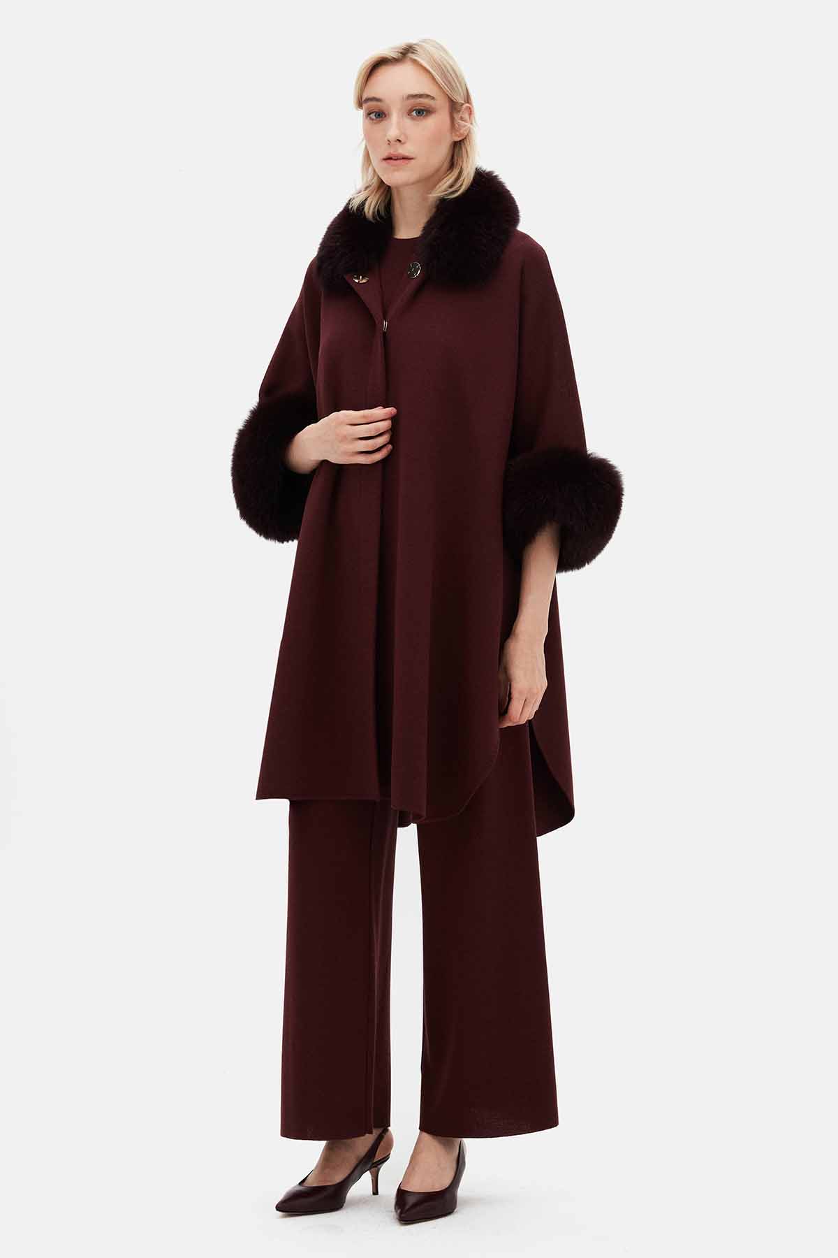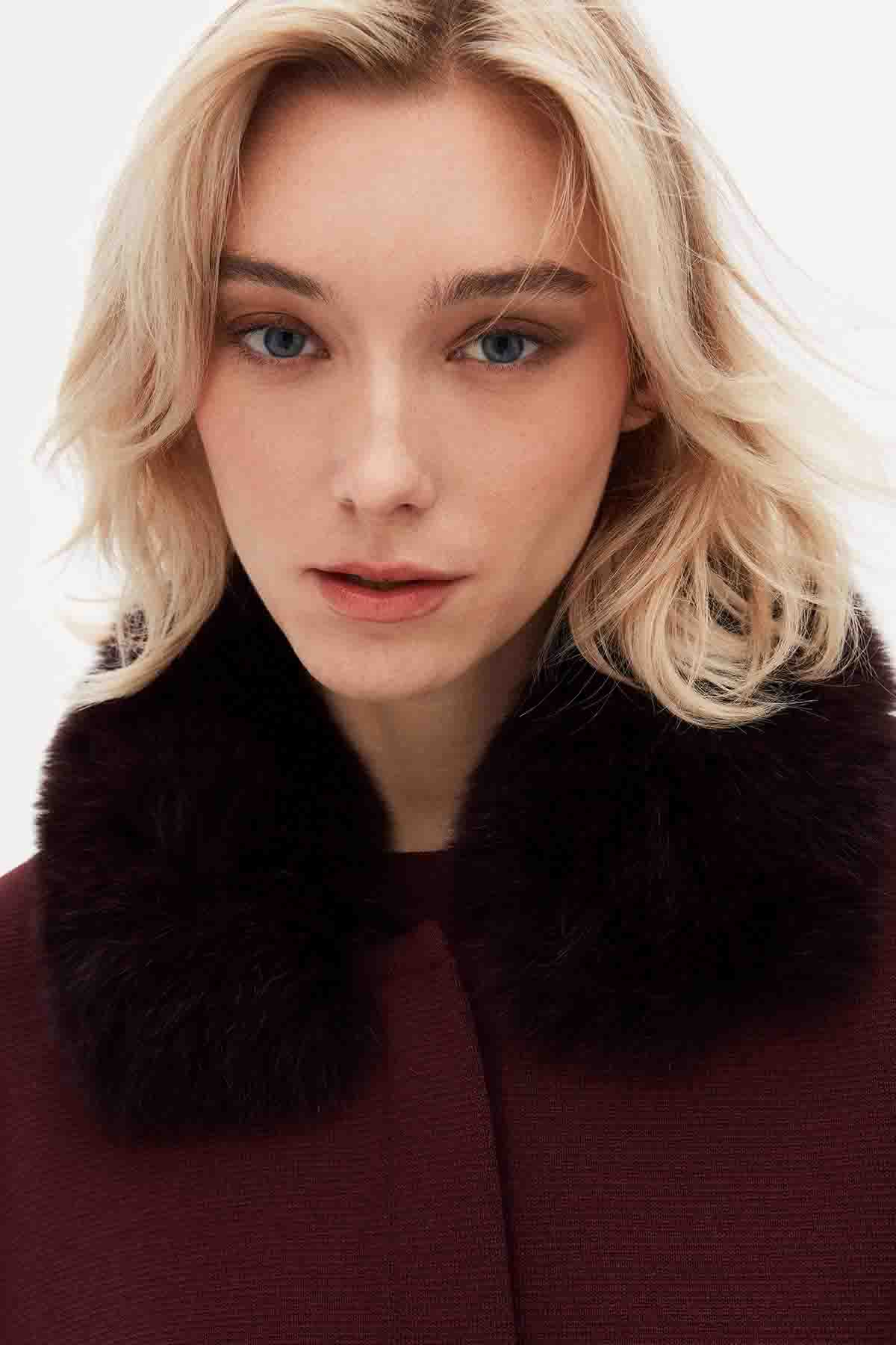 T26K-8400 Kürk Detaylı Triko Panço TOGA-BORDO