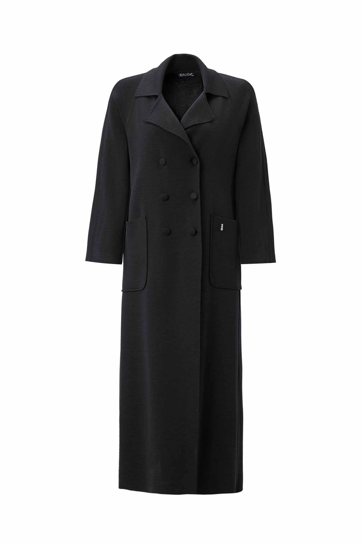 Pocketed Short Knitted Black Jacket