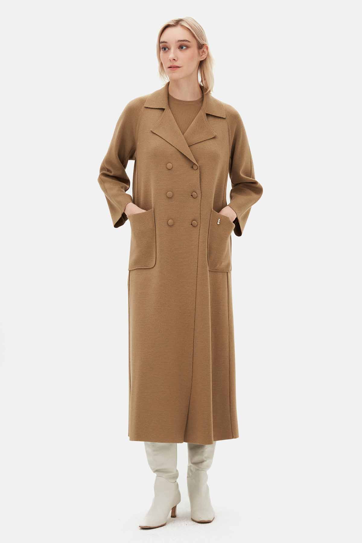 T26K-9002 Gömlek Yaka Cepli Triko Hırka DORY-CAMEL