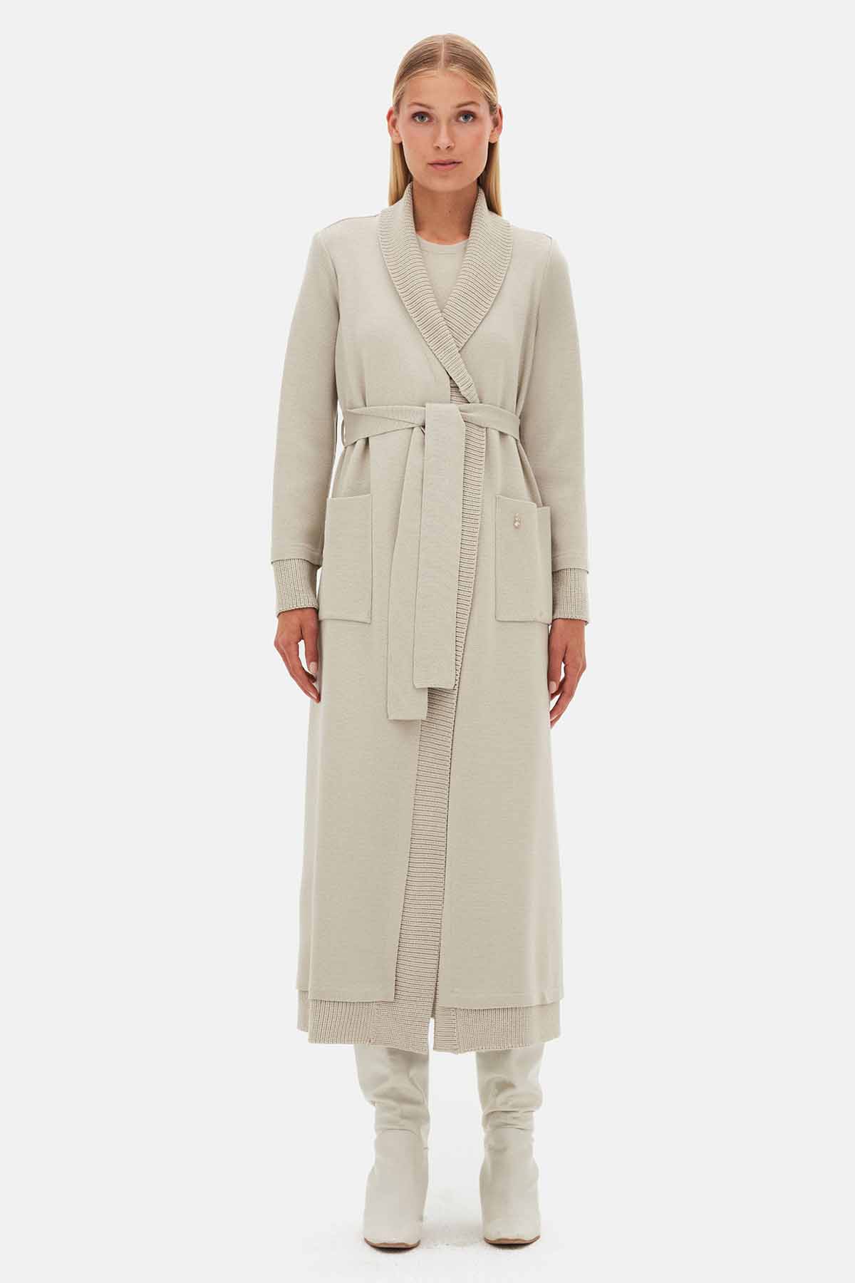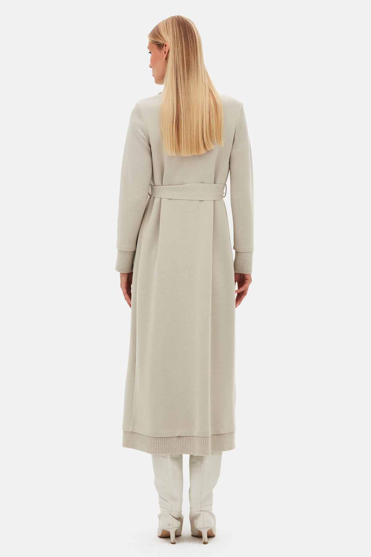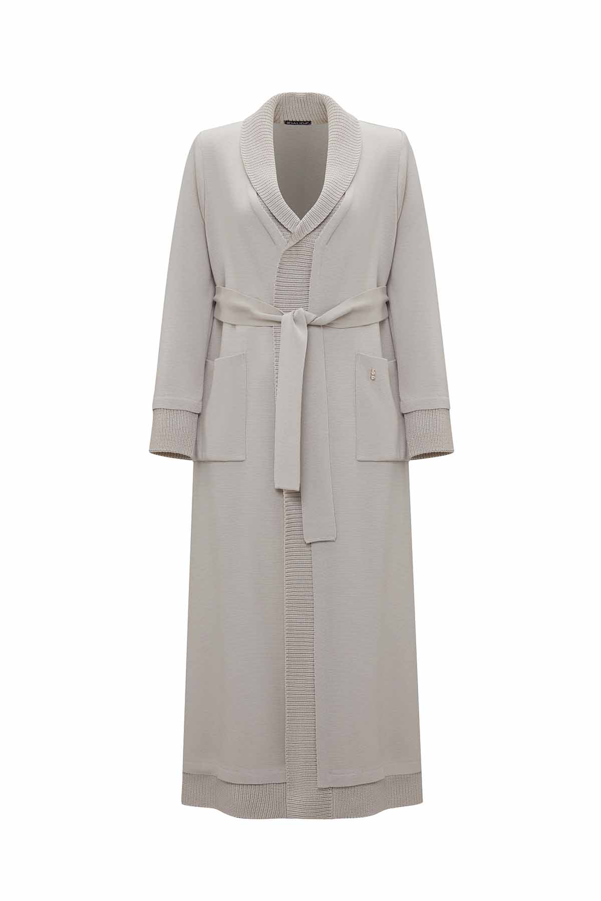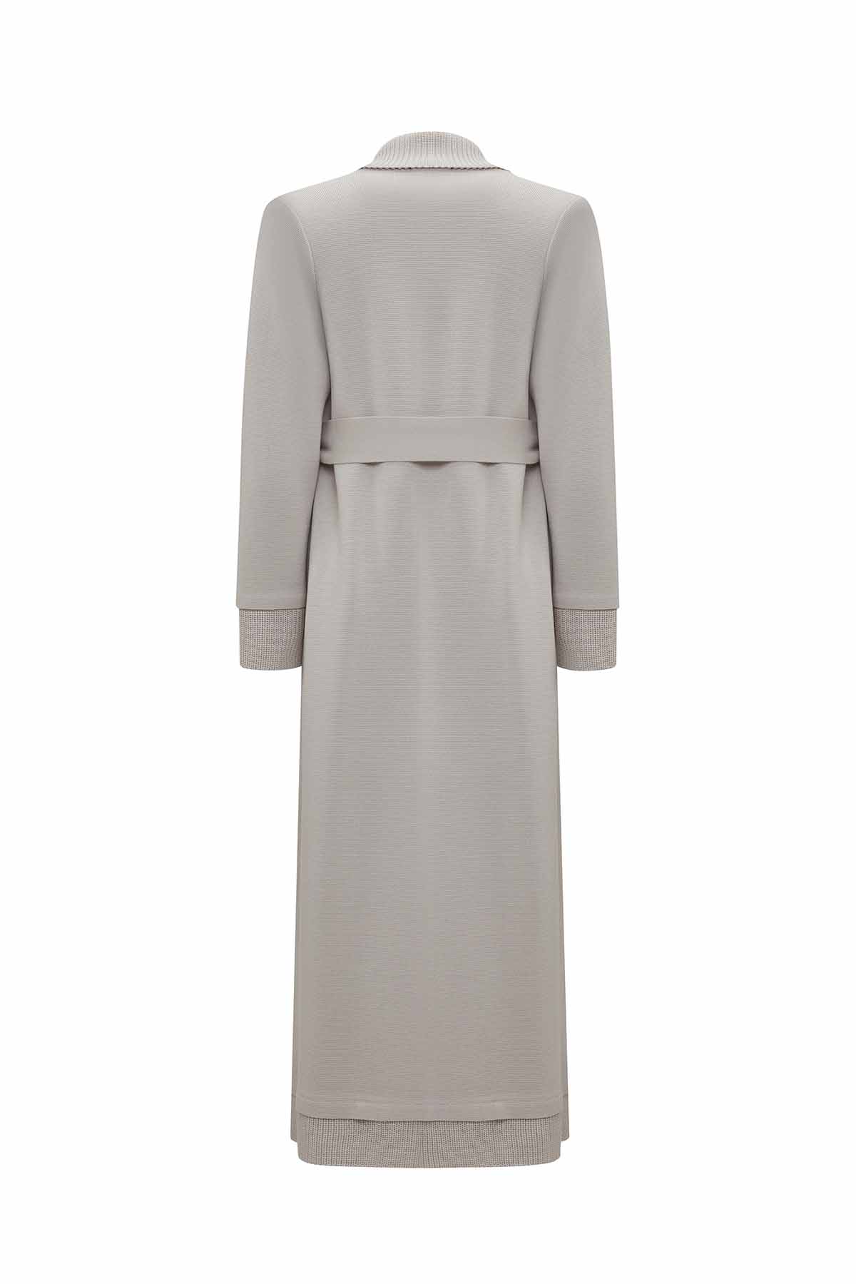 T25PF-9003 Düz Renk Uzun Triko Hırka 1398-LIGHT GREY