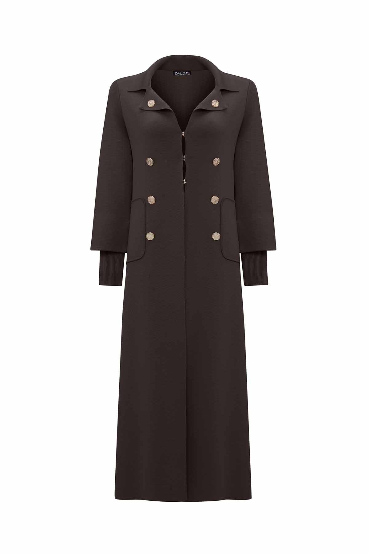 T26K-9007 Düğme Detaylı Düz Renk Uzun Hırka DARDO-TAUPE