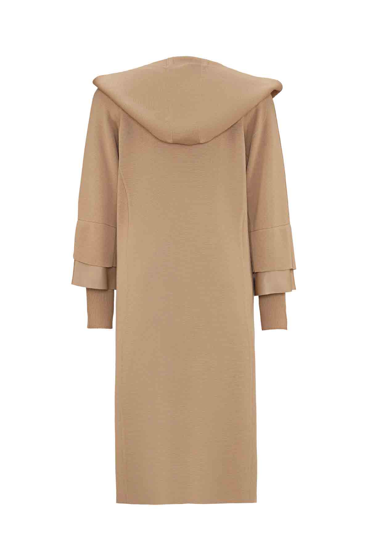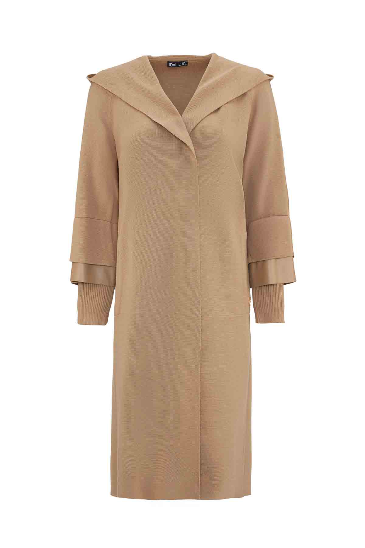 T26K-9012 Bileği Deri Detaylı Çelik Örgü Hırka DORY-CAMEL