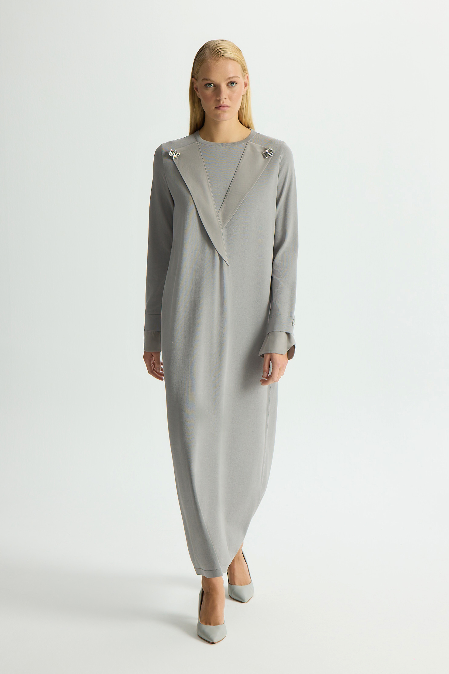 Cupro knit dress with sleeves