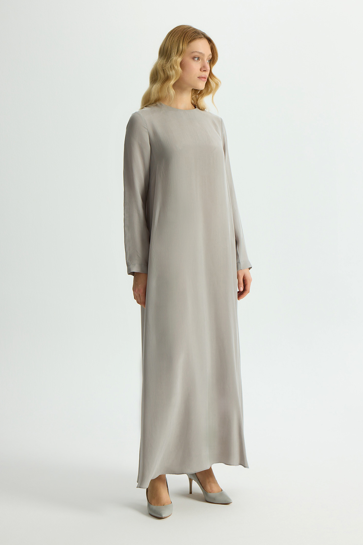 Solid Color Long Sleeve Cupro Dress