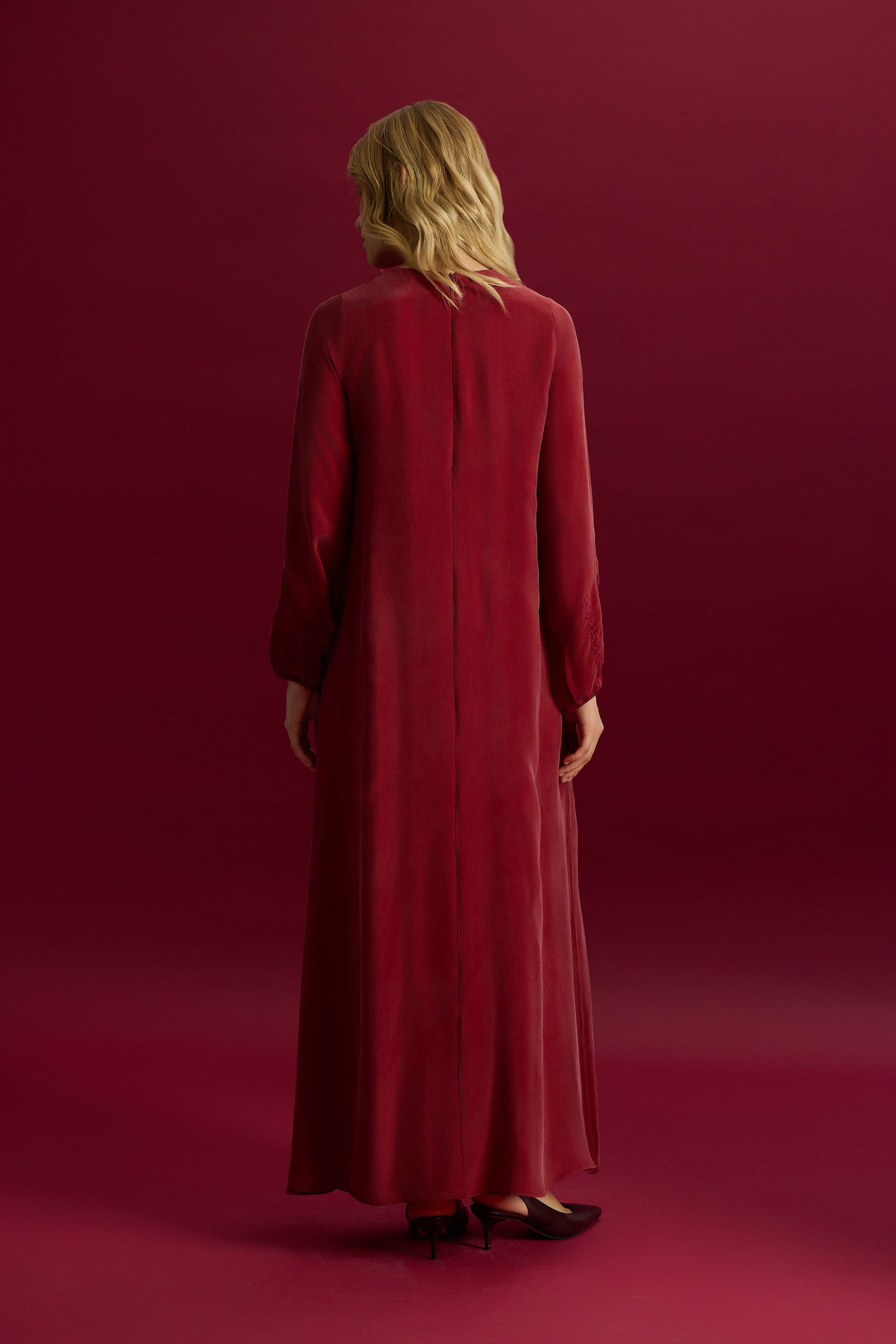 Solid Color Long Sleeve Cupro Dress