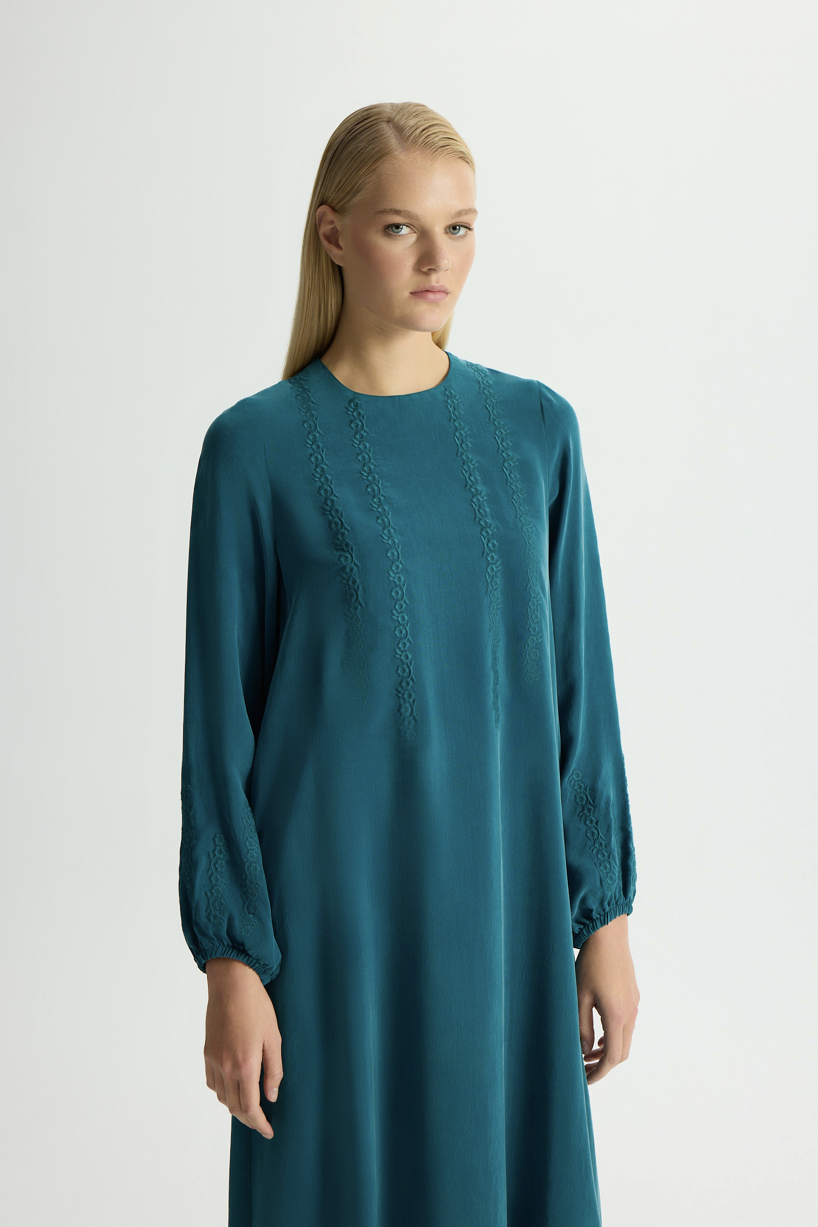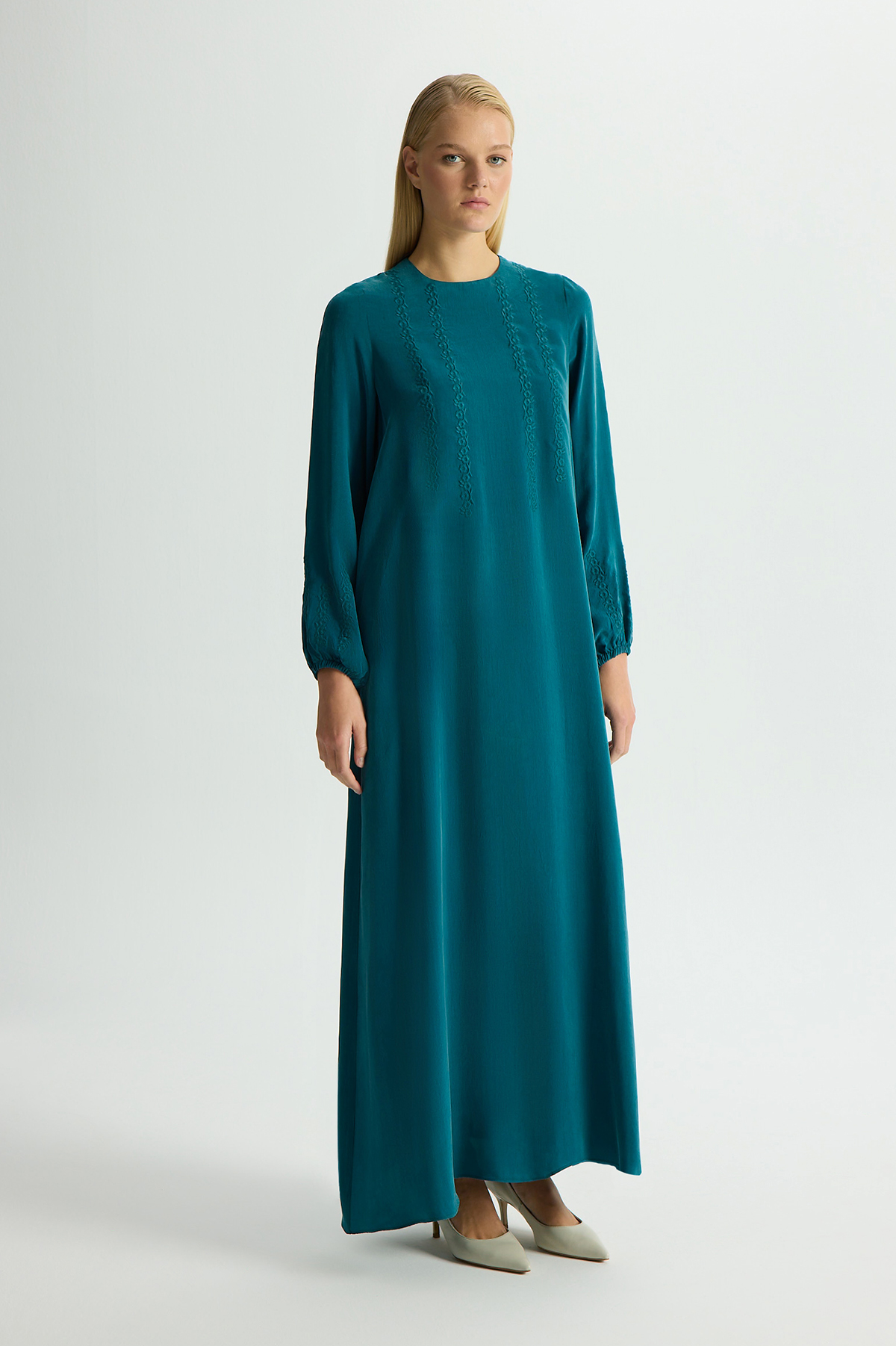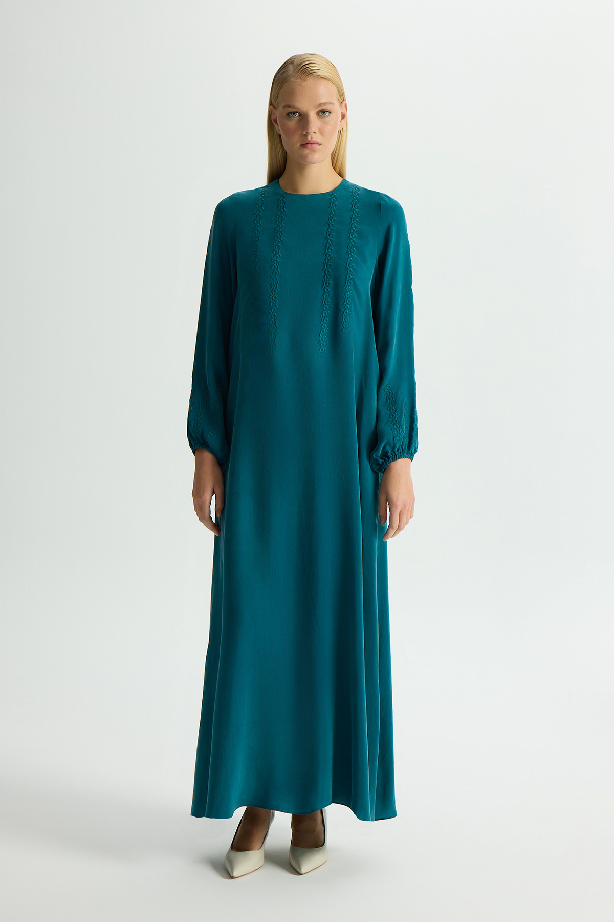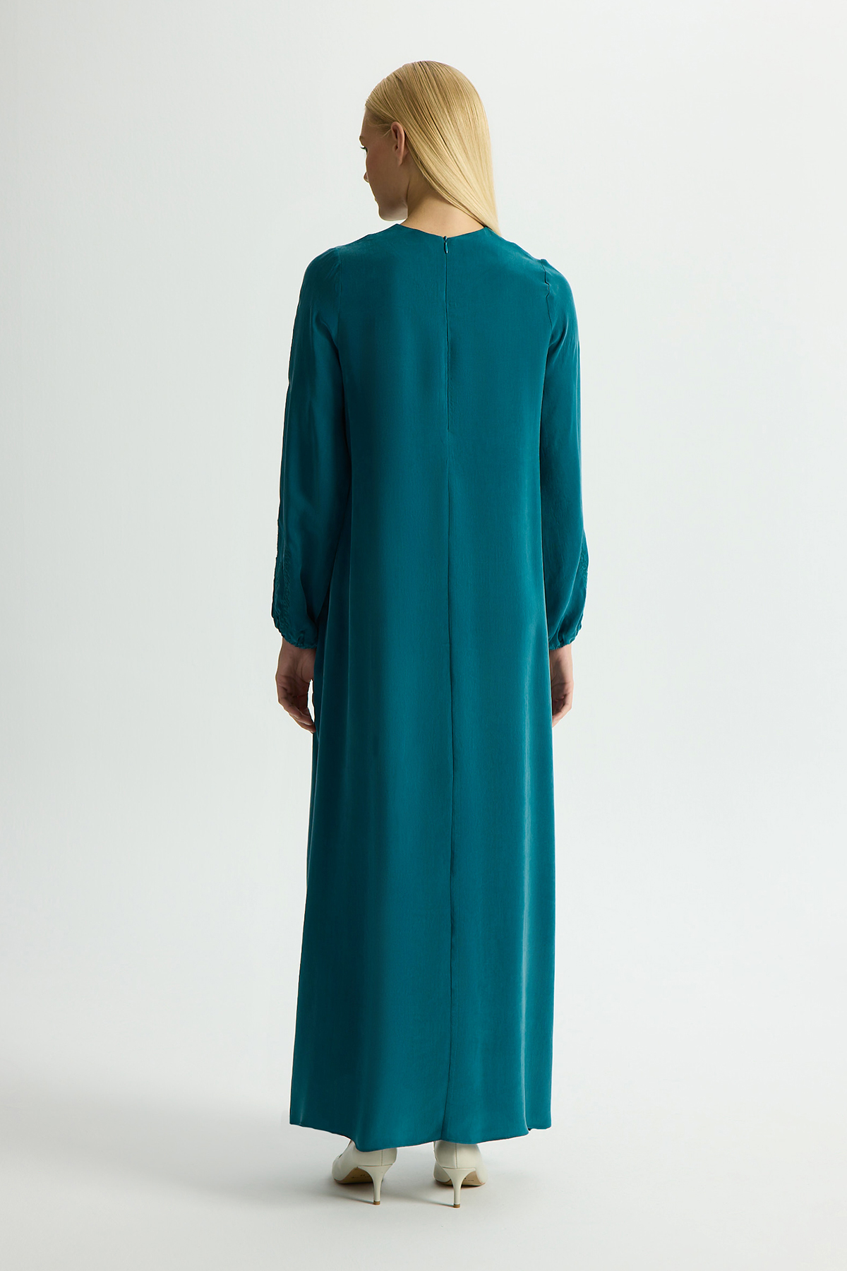 Solid Color Long Sleeve Cupro Dress