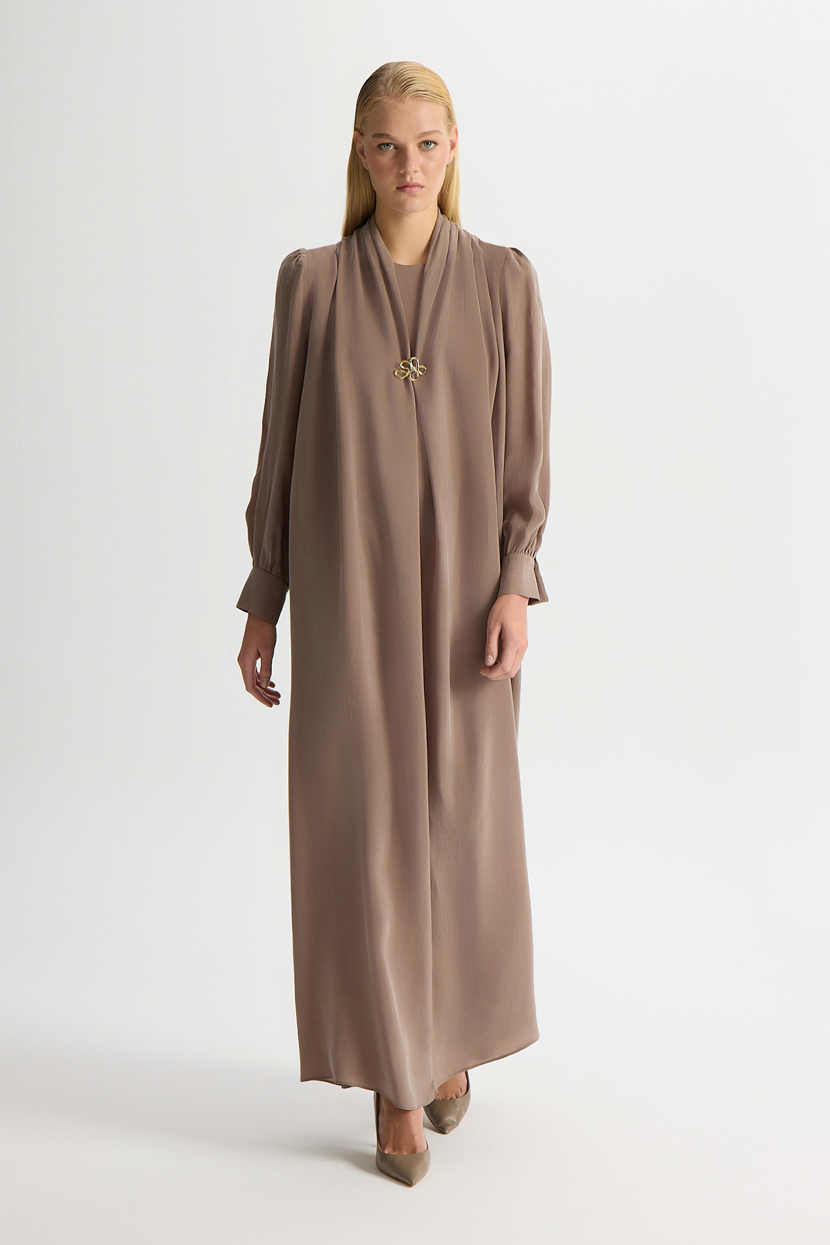 Brooch-Detailed Cupro Dress