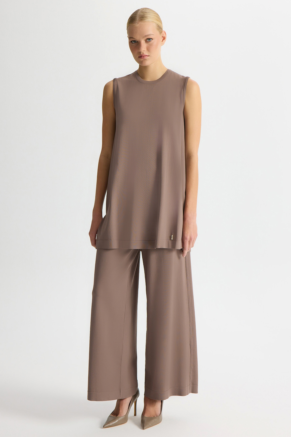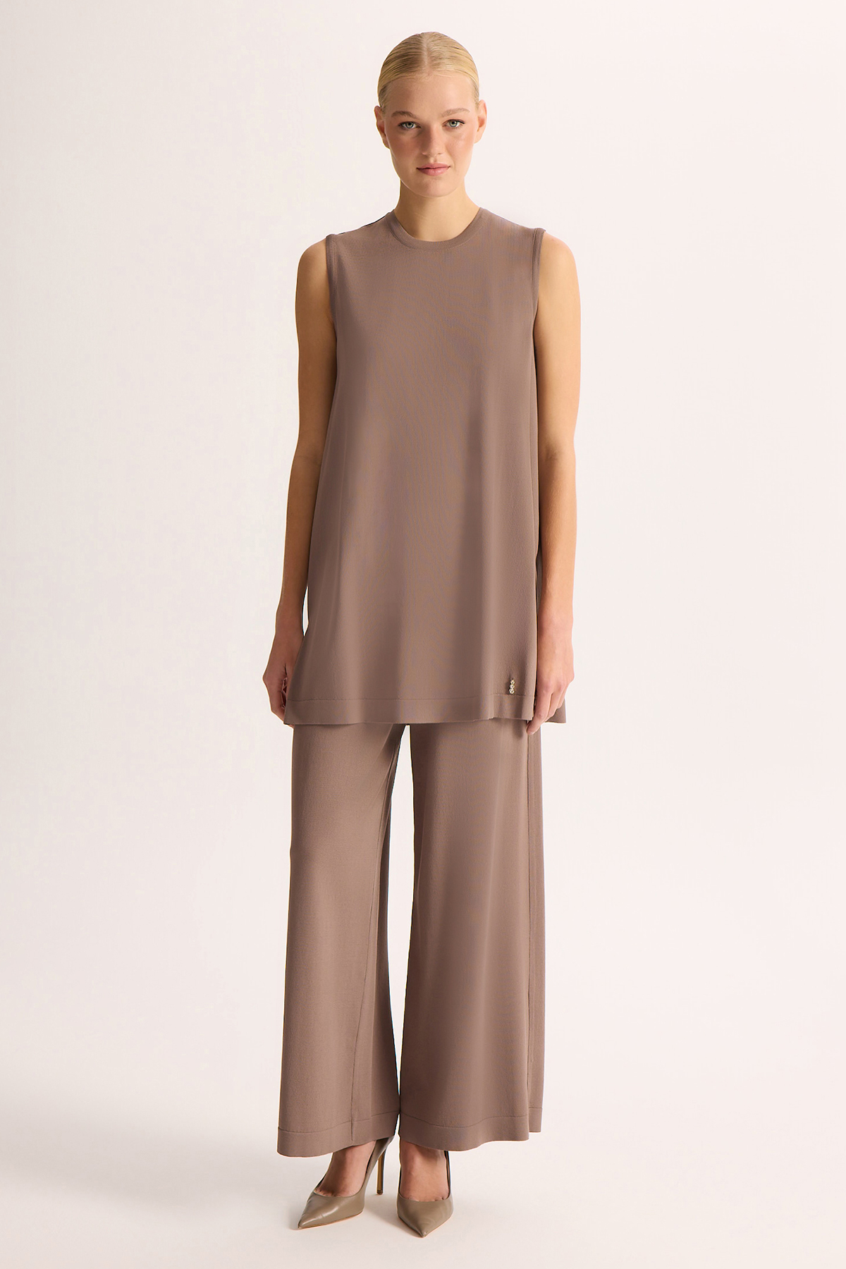 Basic Kolsuz Triko Tunik Kahverengi Pudra