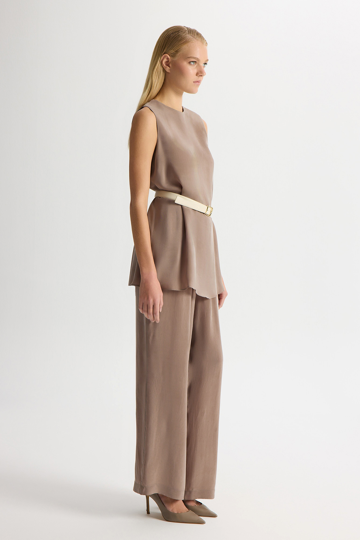 Belted Pleated Detailed Cupro Tunic