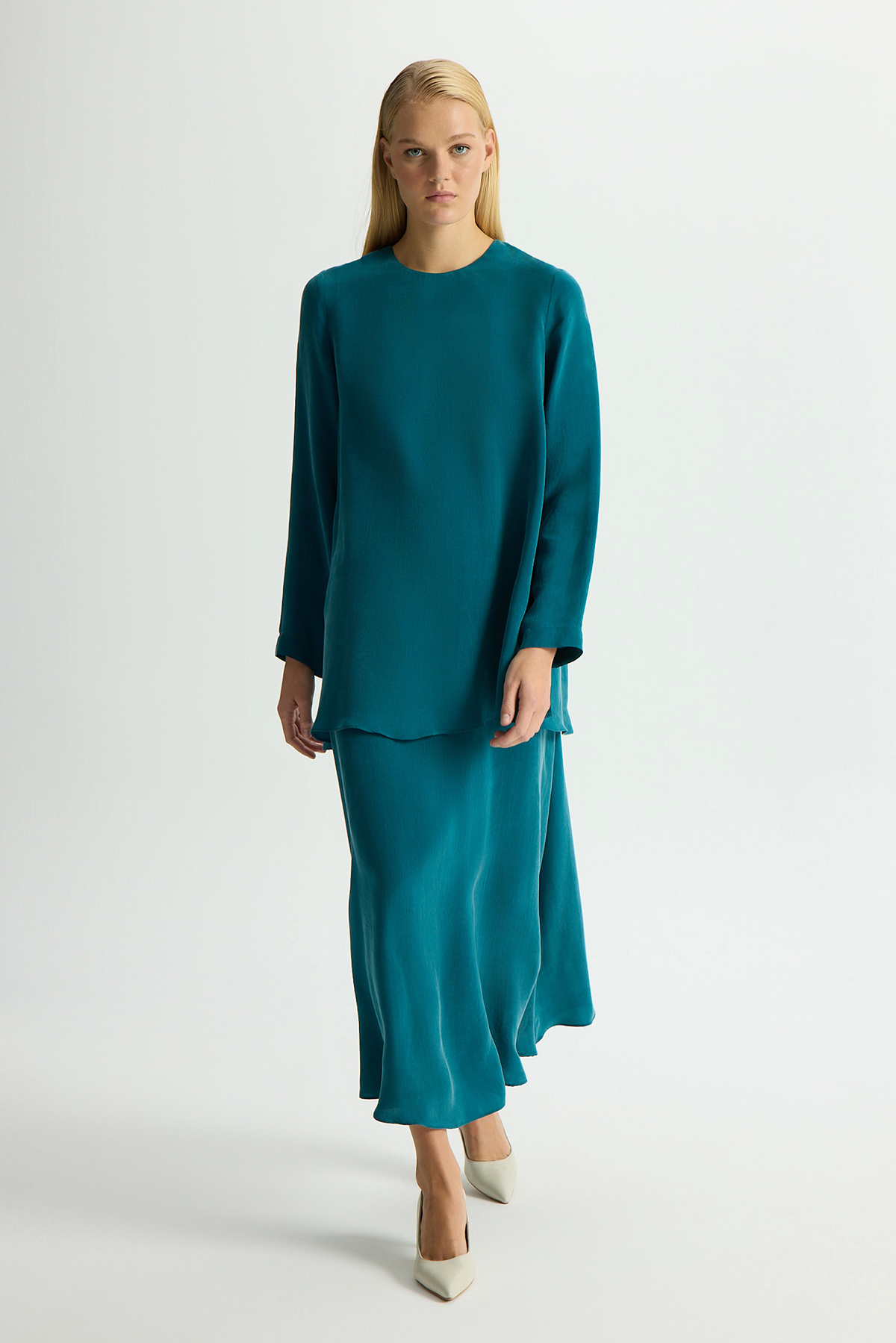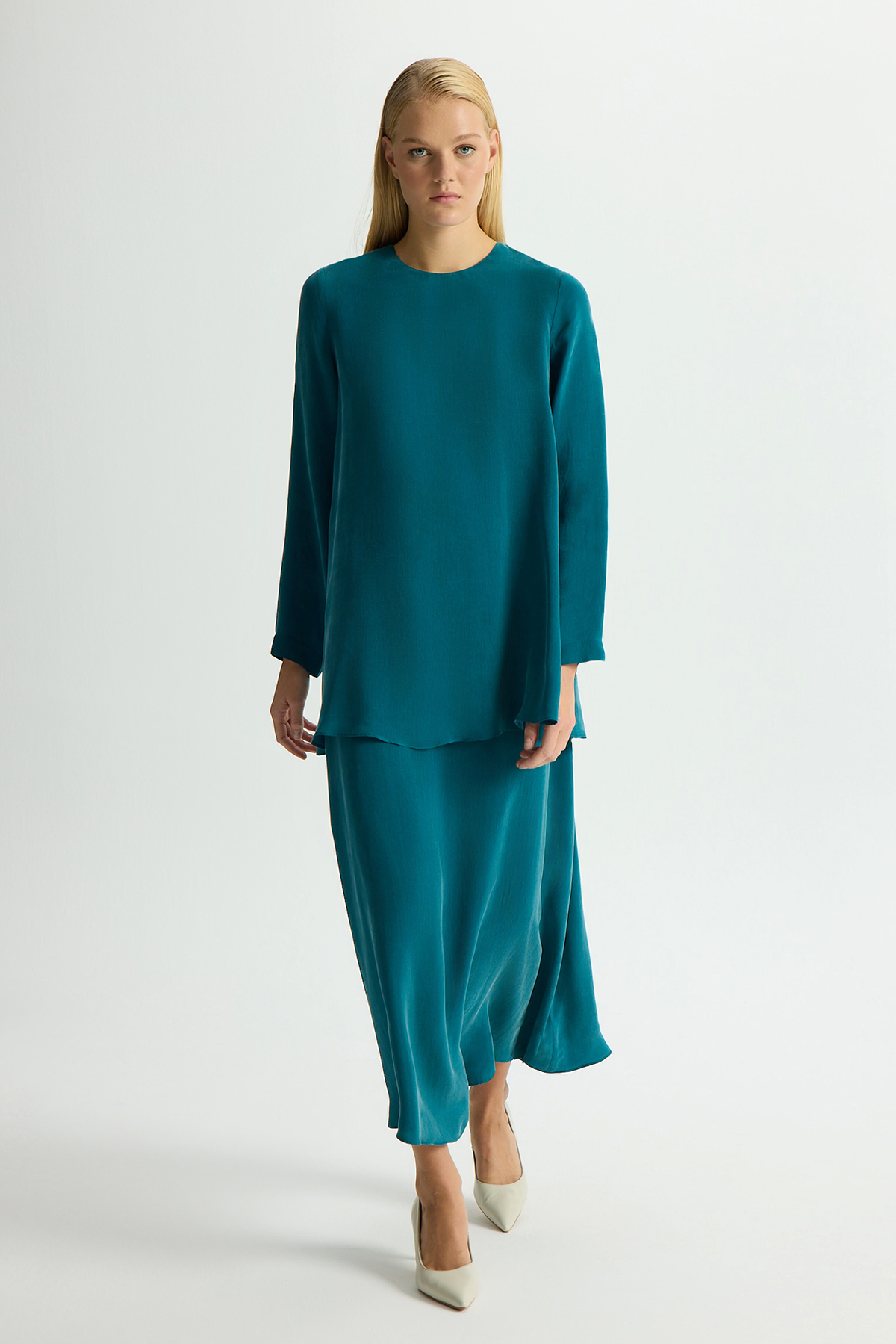 Cupro Tunic with Gathered Ankle Balloon Sleeves