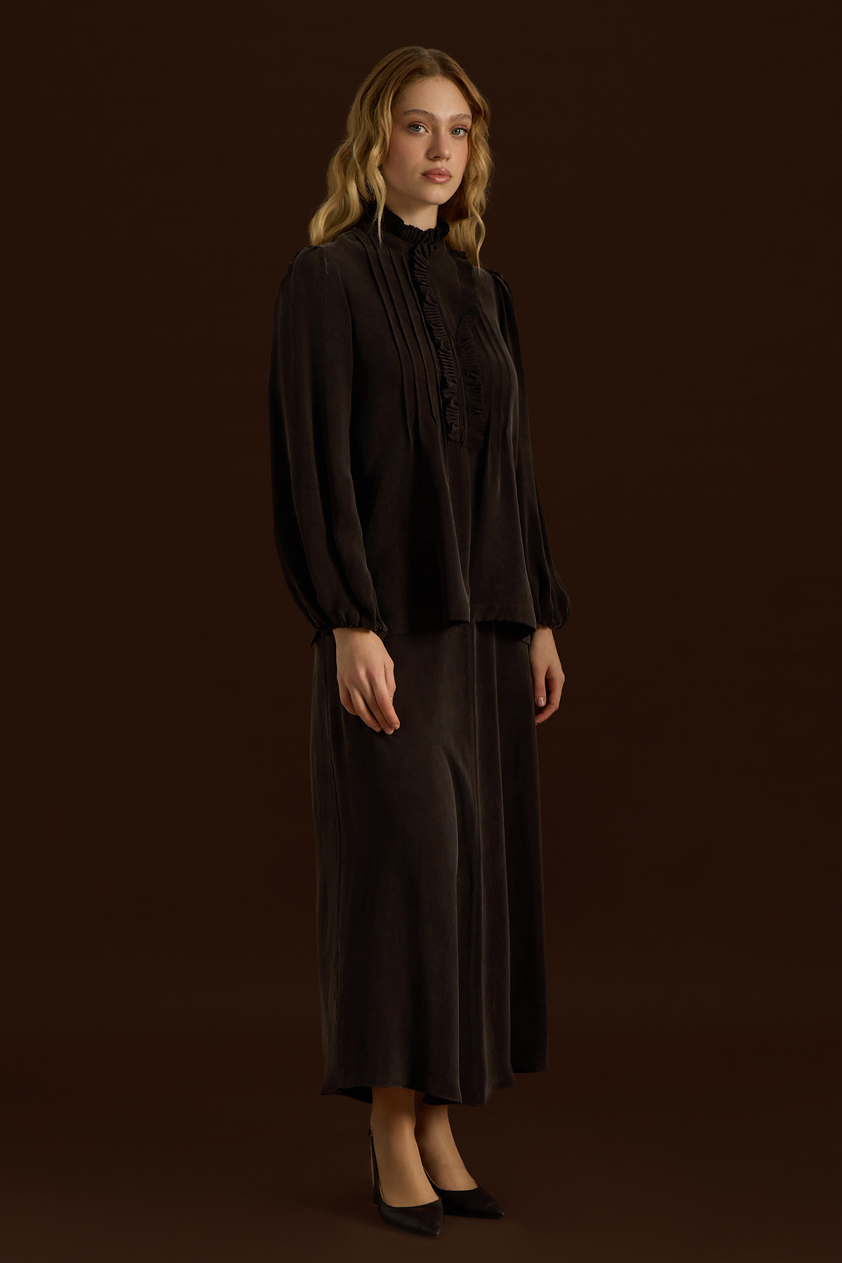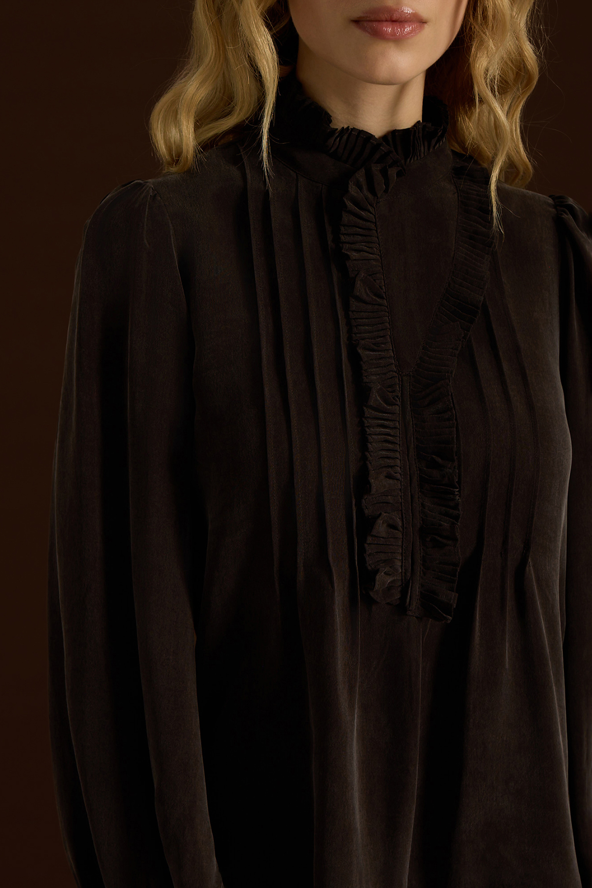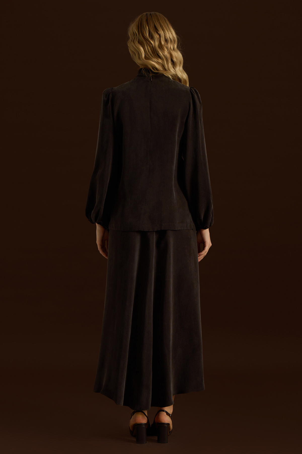 Cupro Tunic with Gathered Ankle Balloon Sleeves