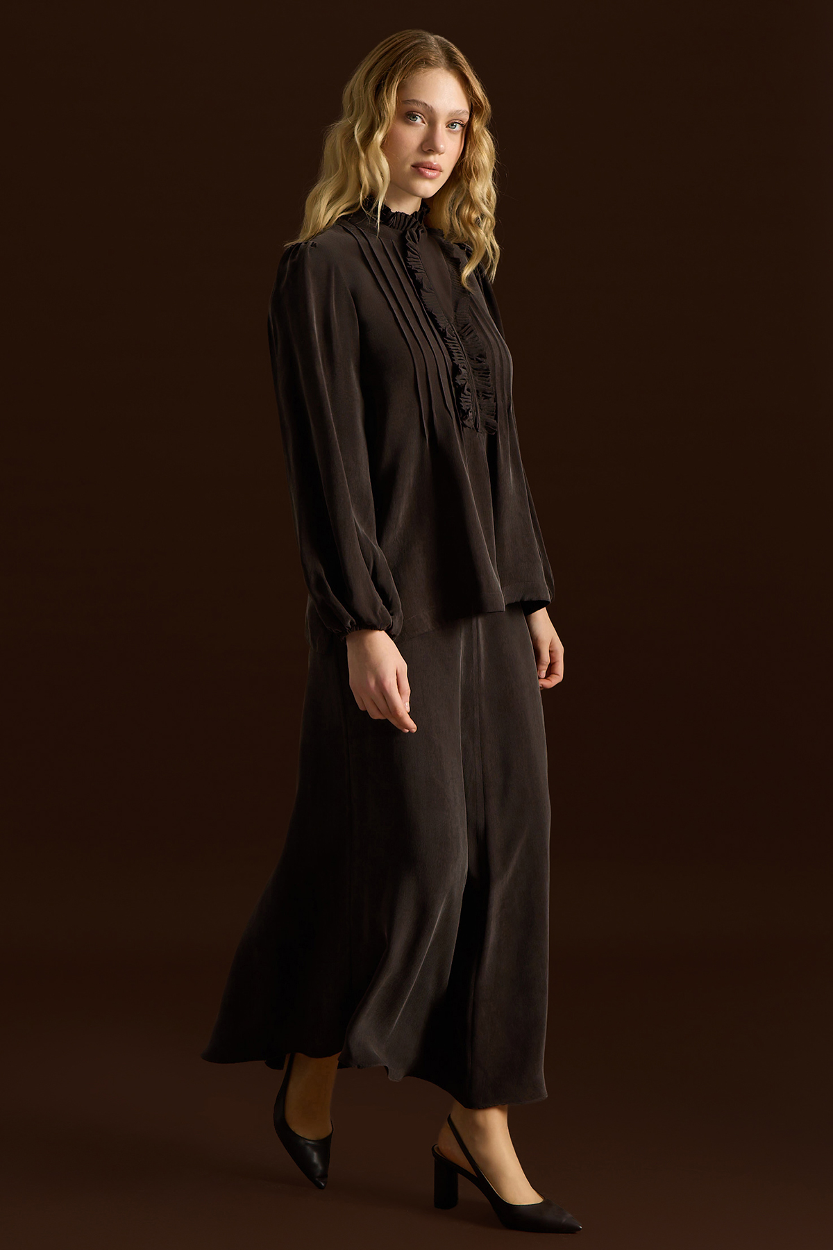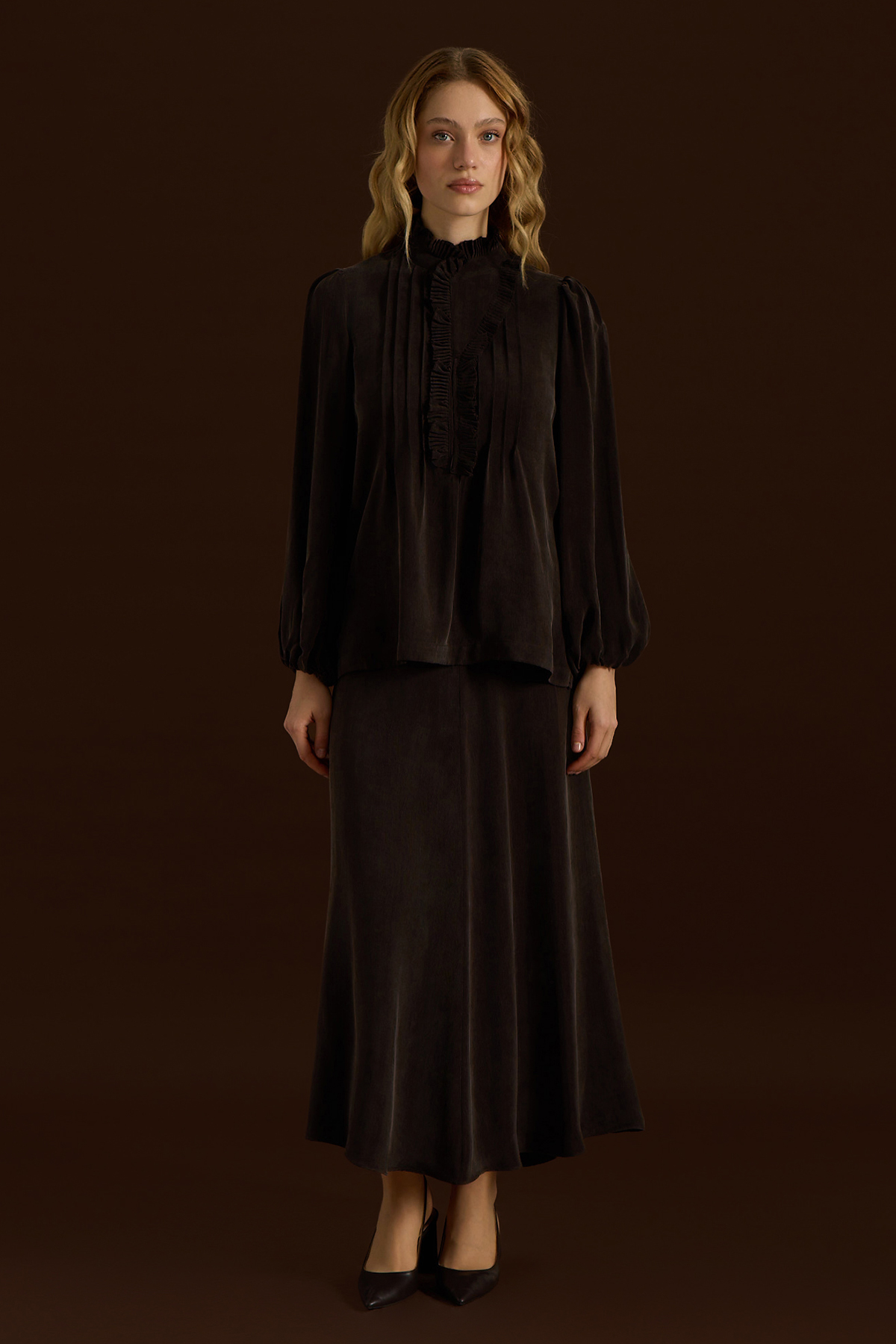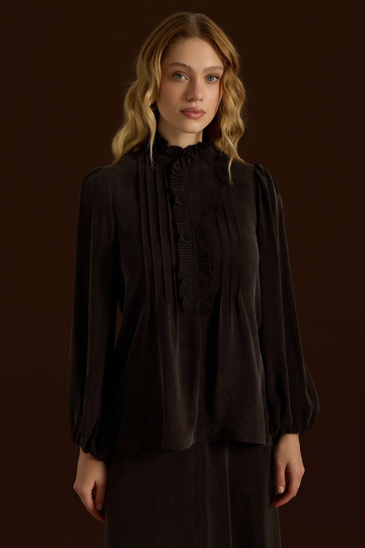 Cupro Tunic with Gathered Ankle Balloon Sleeves