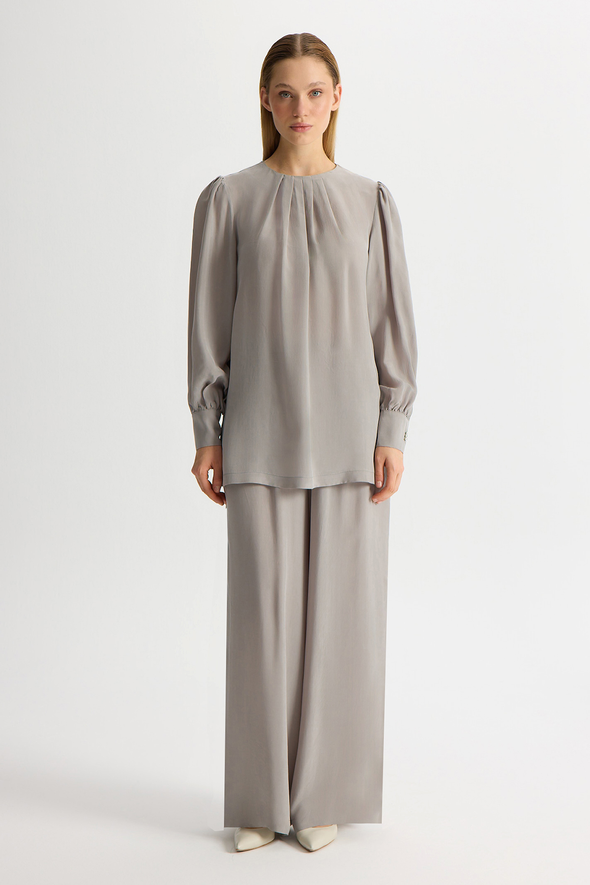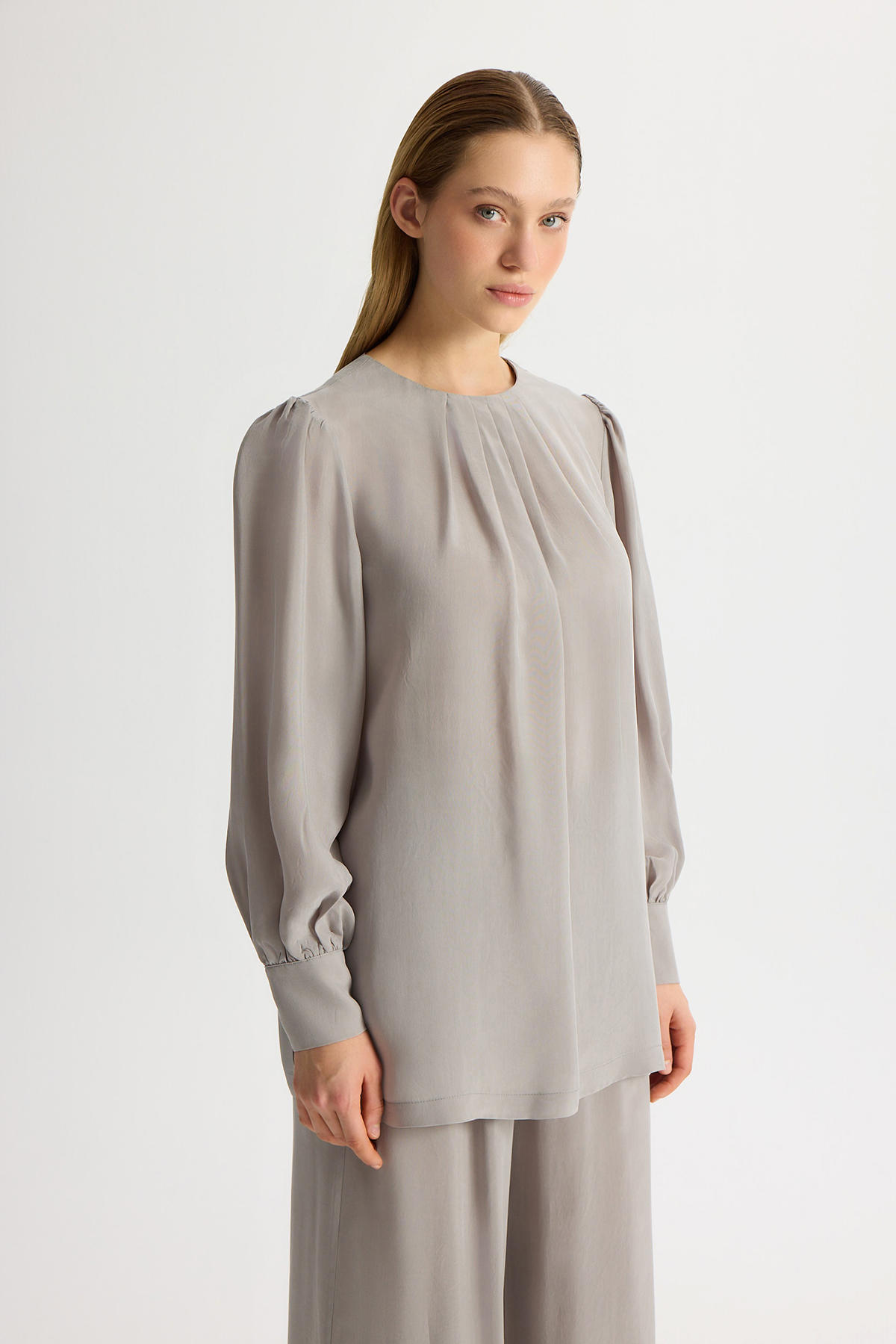 Cupro Tunic with Gathered Ankle Balloon Sleeves