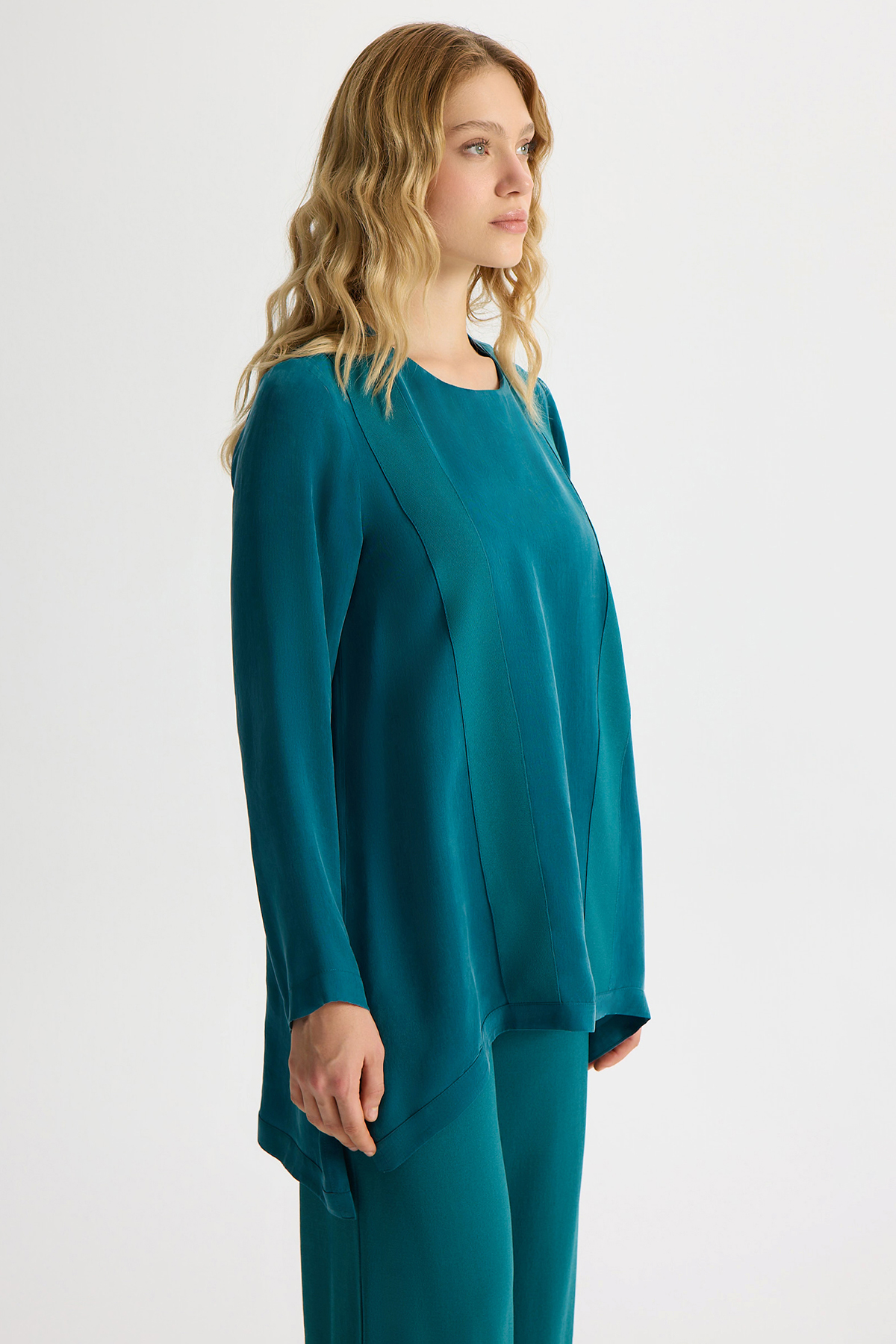 Cupro Tunic with Gathered Ankle Balloon Sleeves