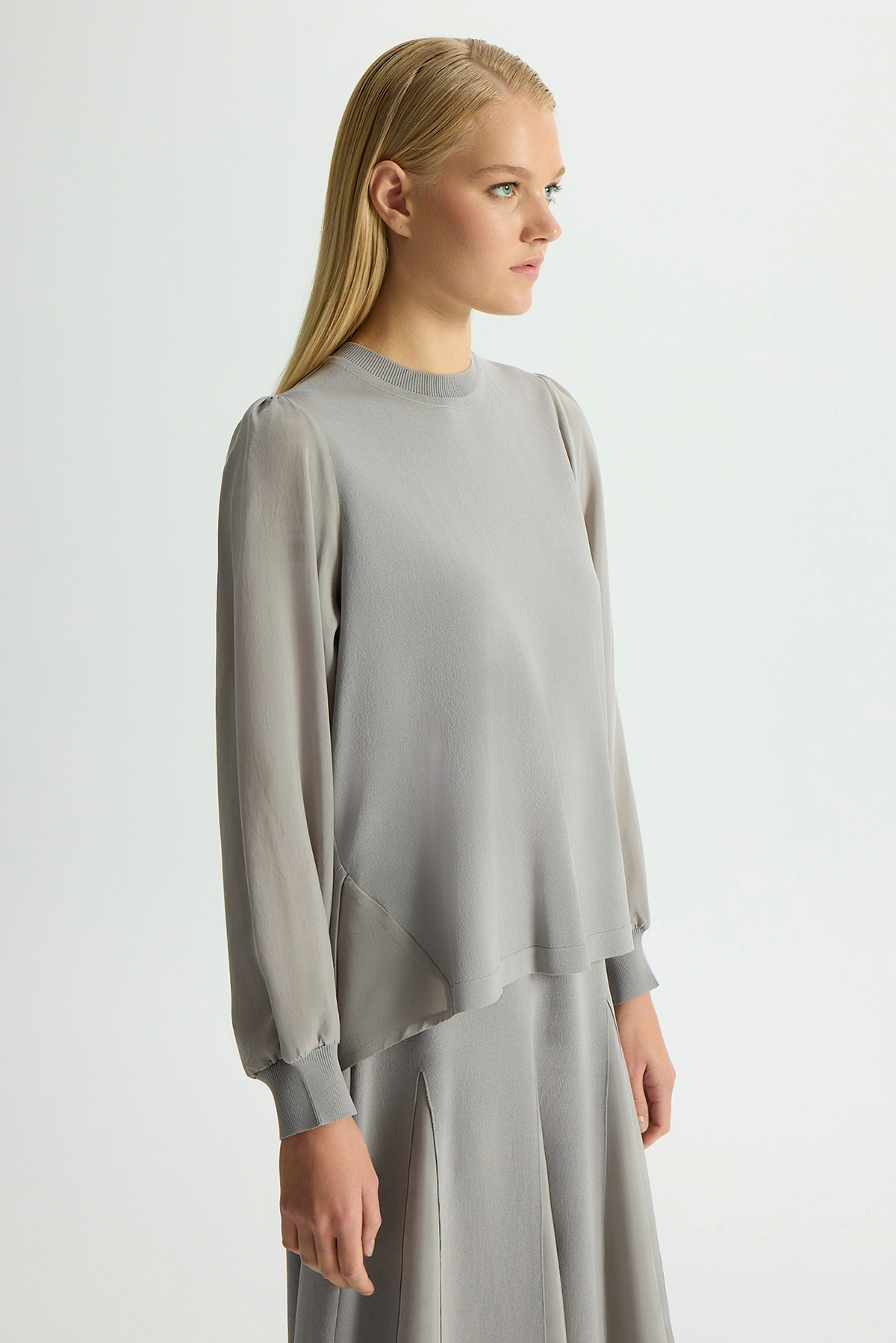 Evaze Kesim Bileği Lastikli Tunik Gri