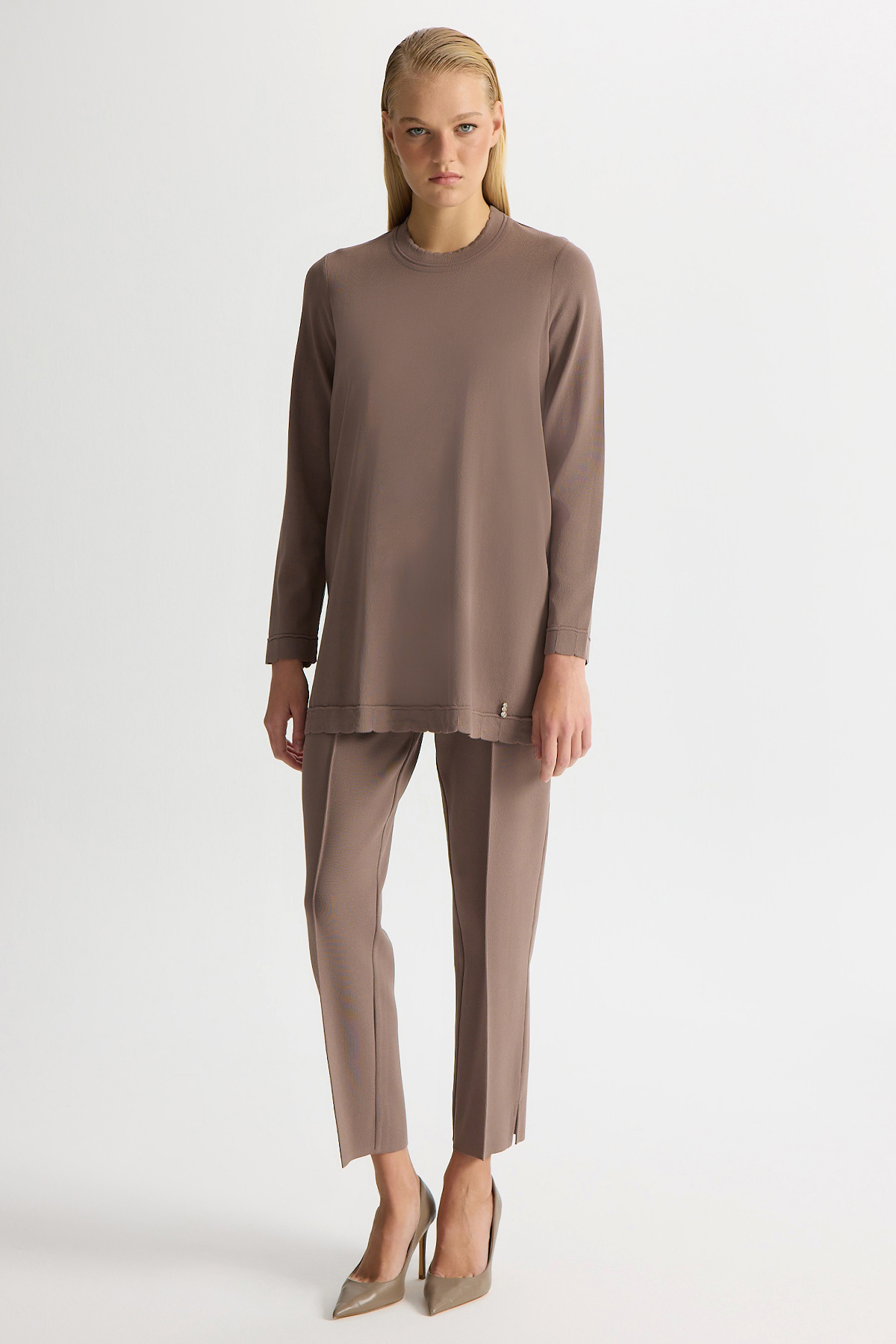 Dar Paça Basic Triko Pantolon Kahverengi Pudra