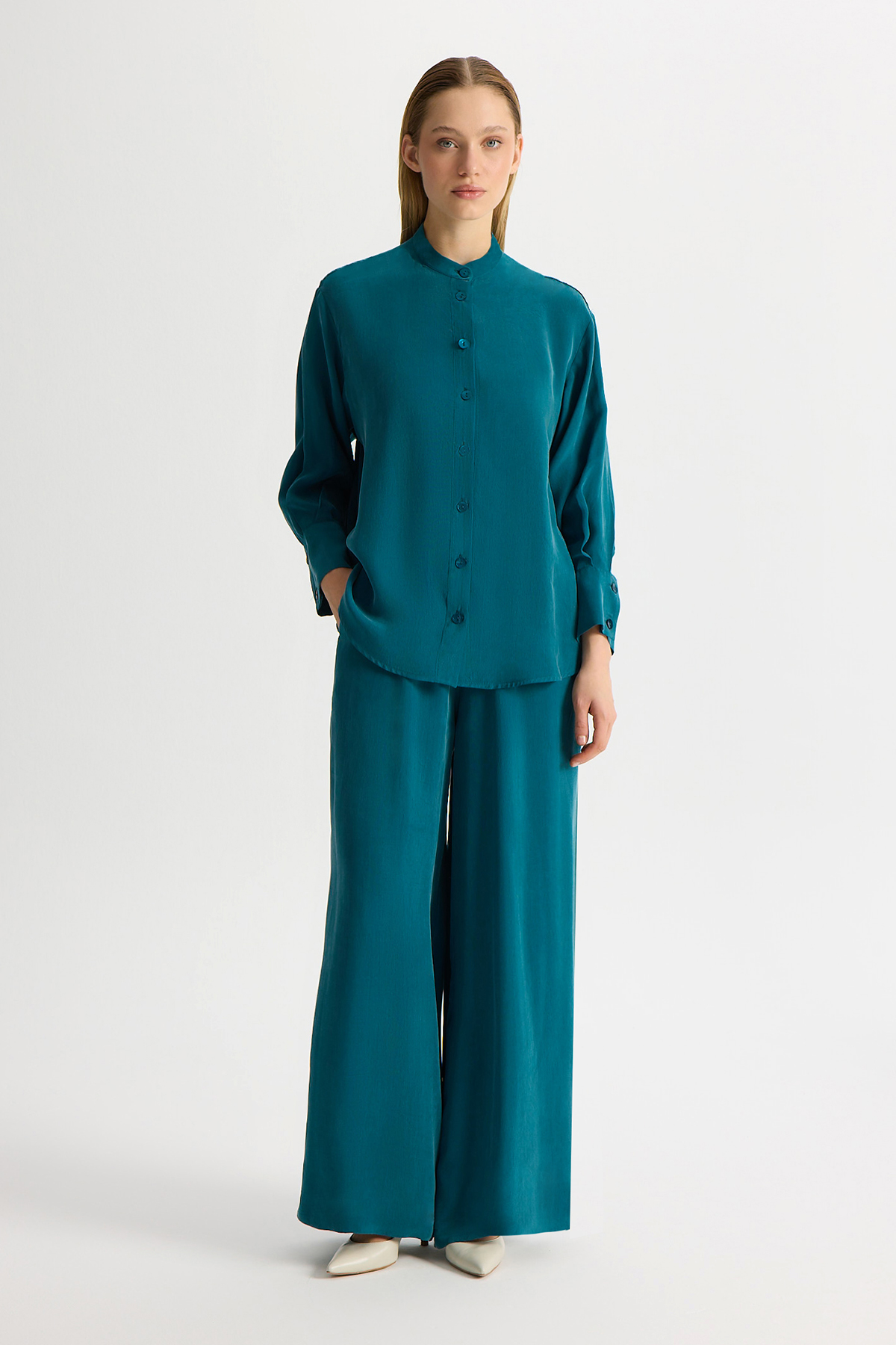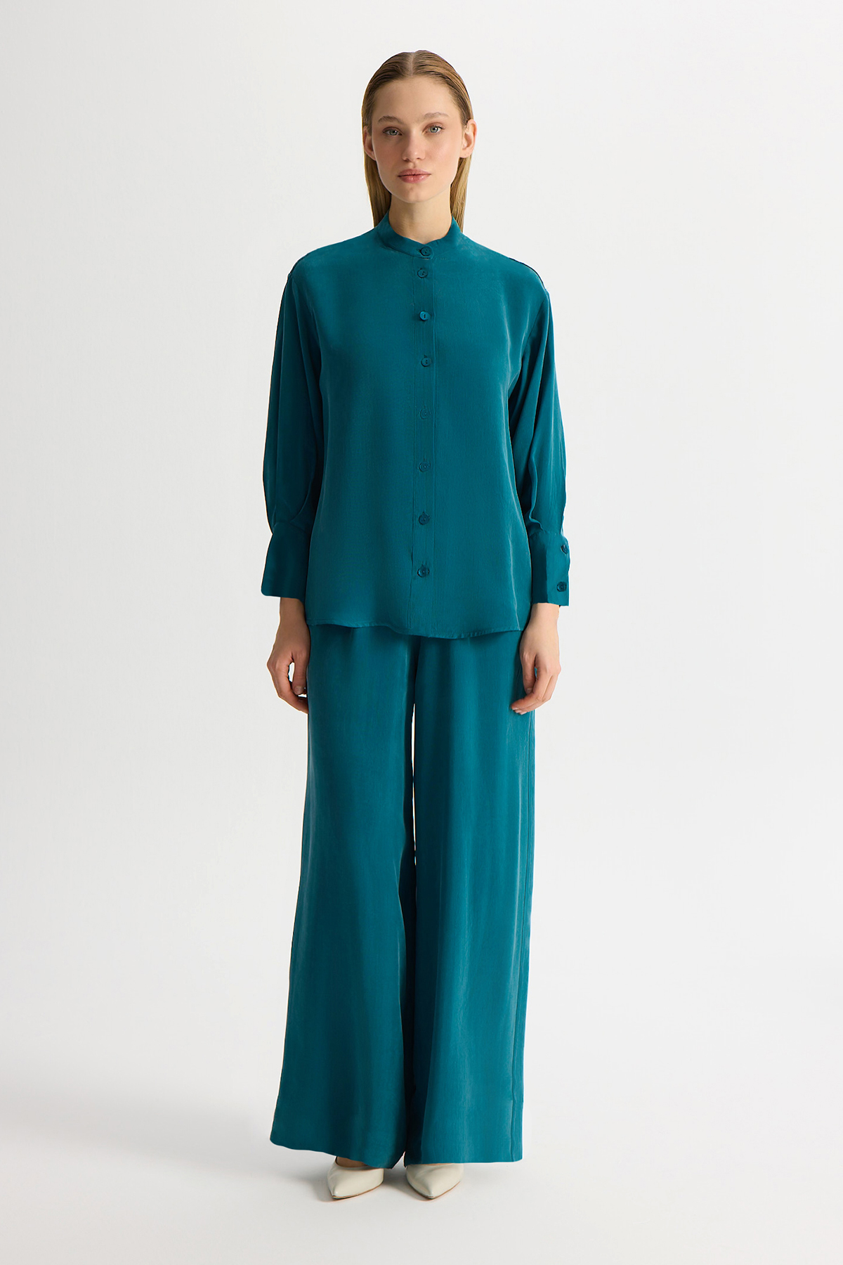 Wide Leg Basic Cupro Trousers