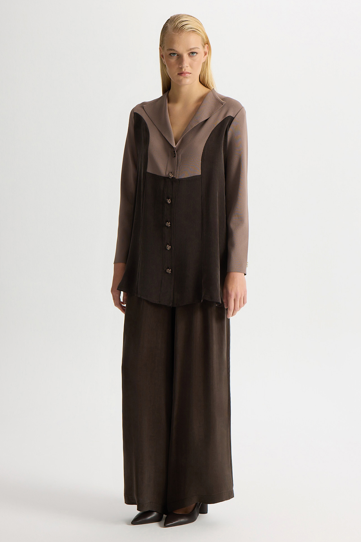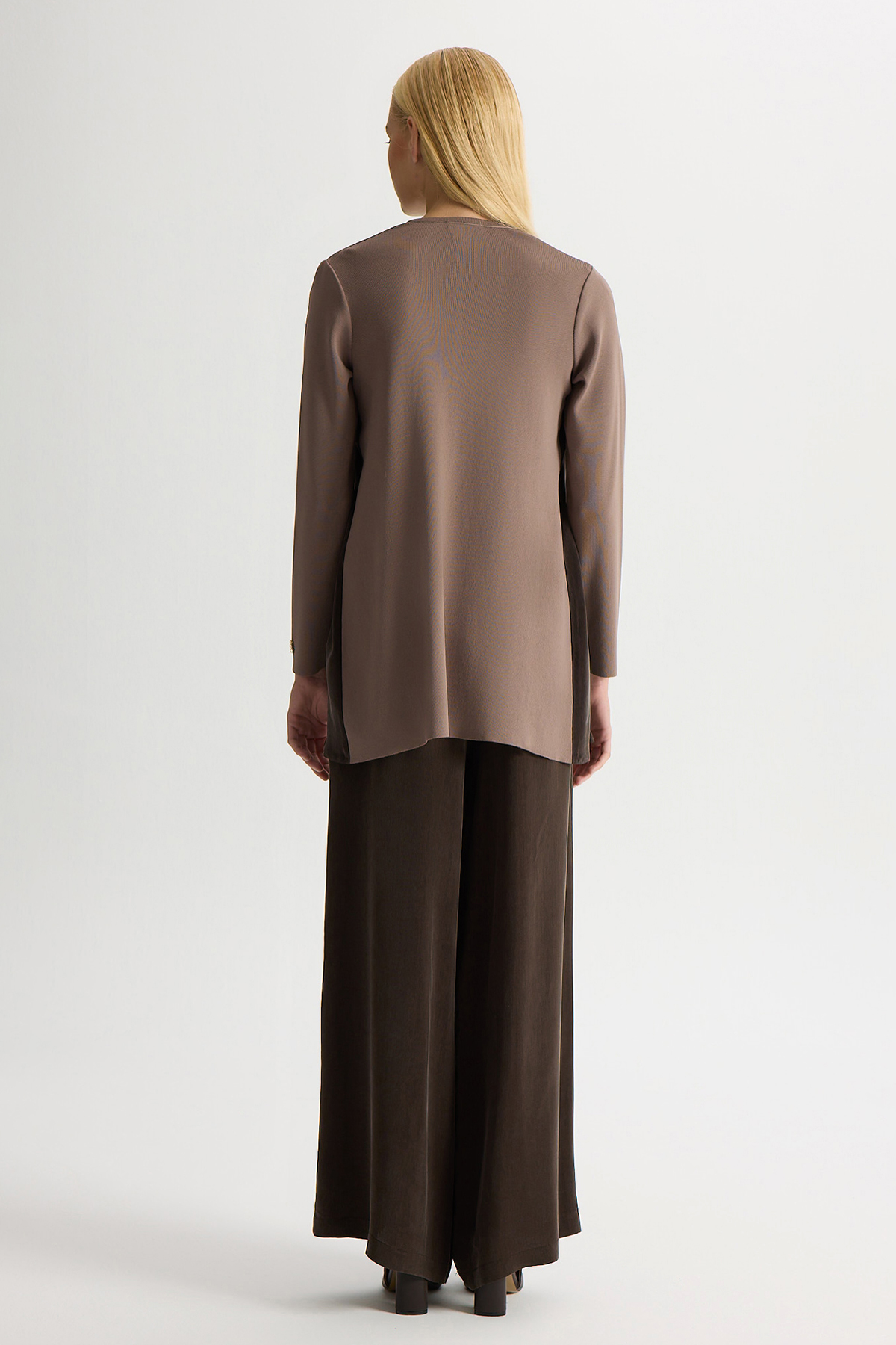 Triko-Cupro Ceket Kahverengi Pudra