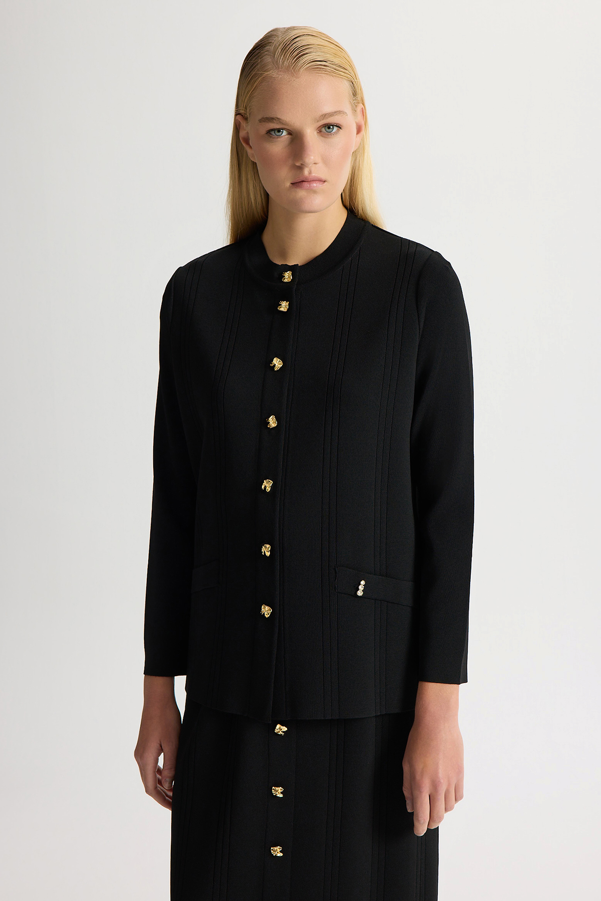 Düğmeli Klasik Triko Ceket Siyah