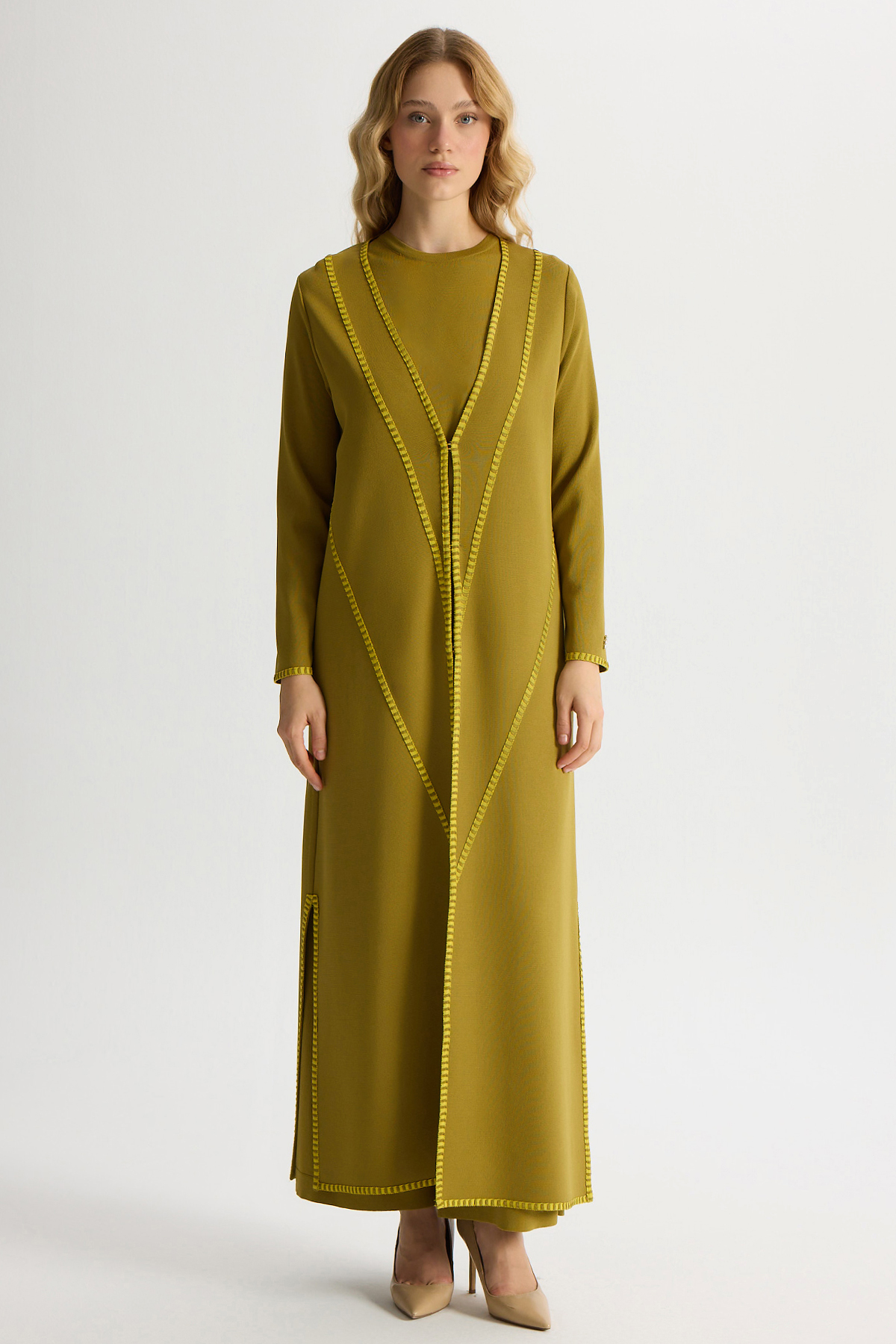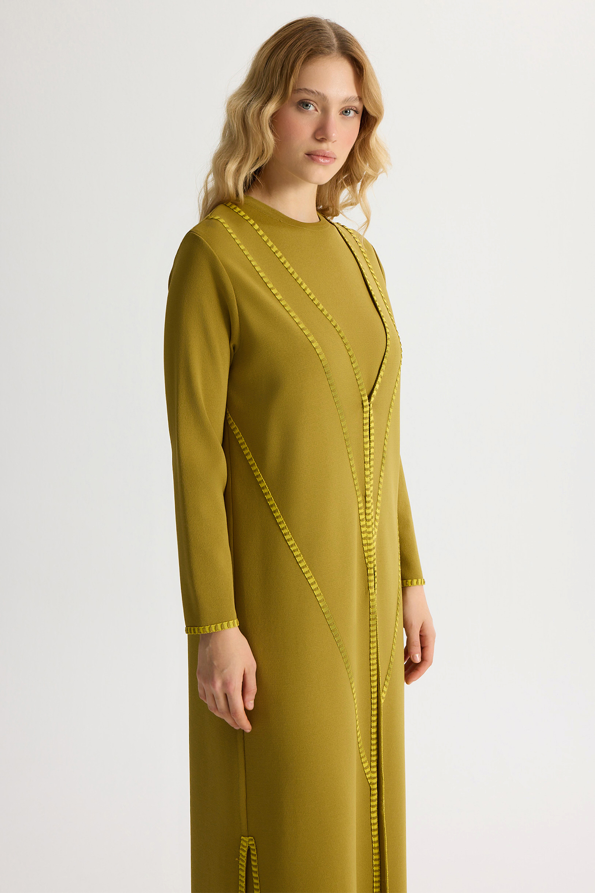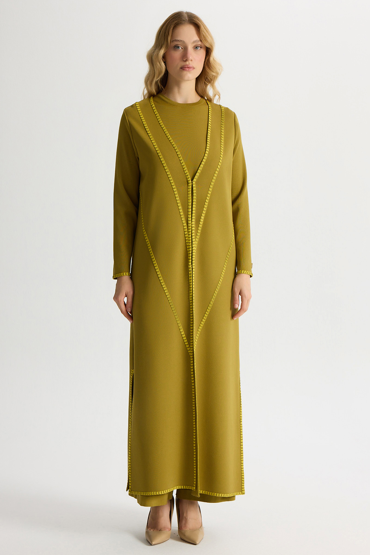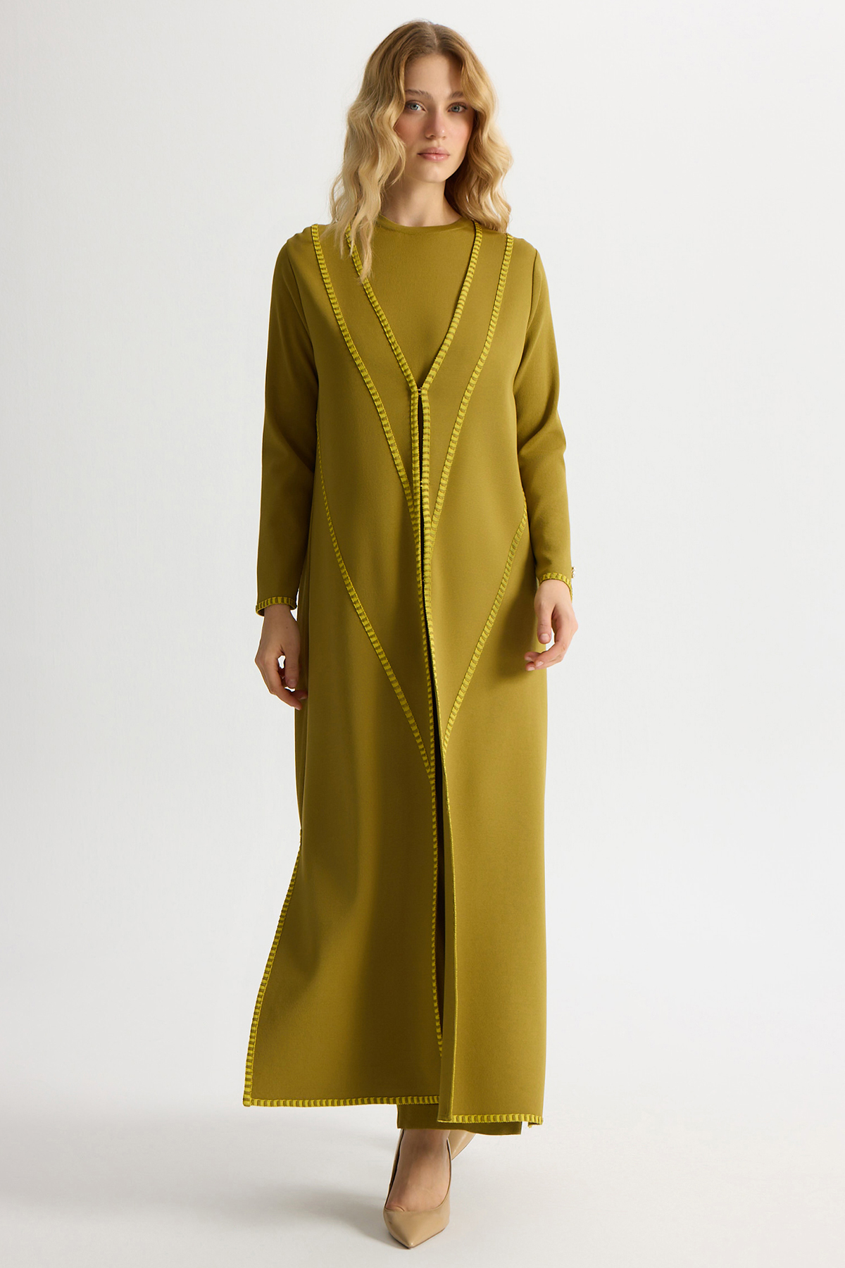Tiktak Detaylı Düz Renk Triko Hırka Amber
