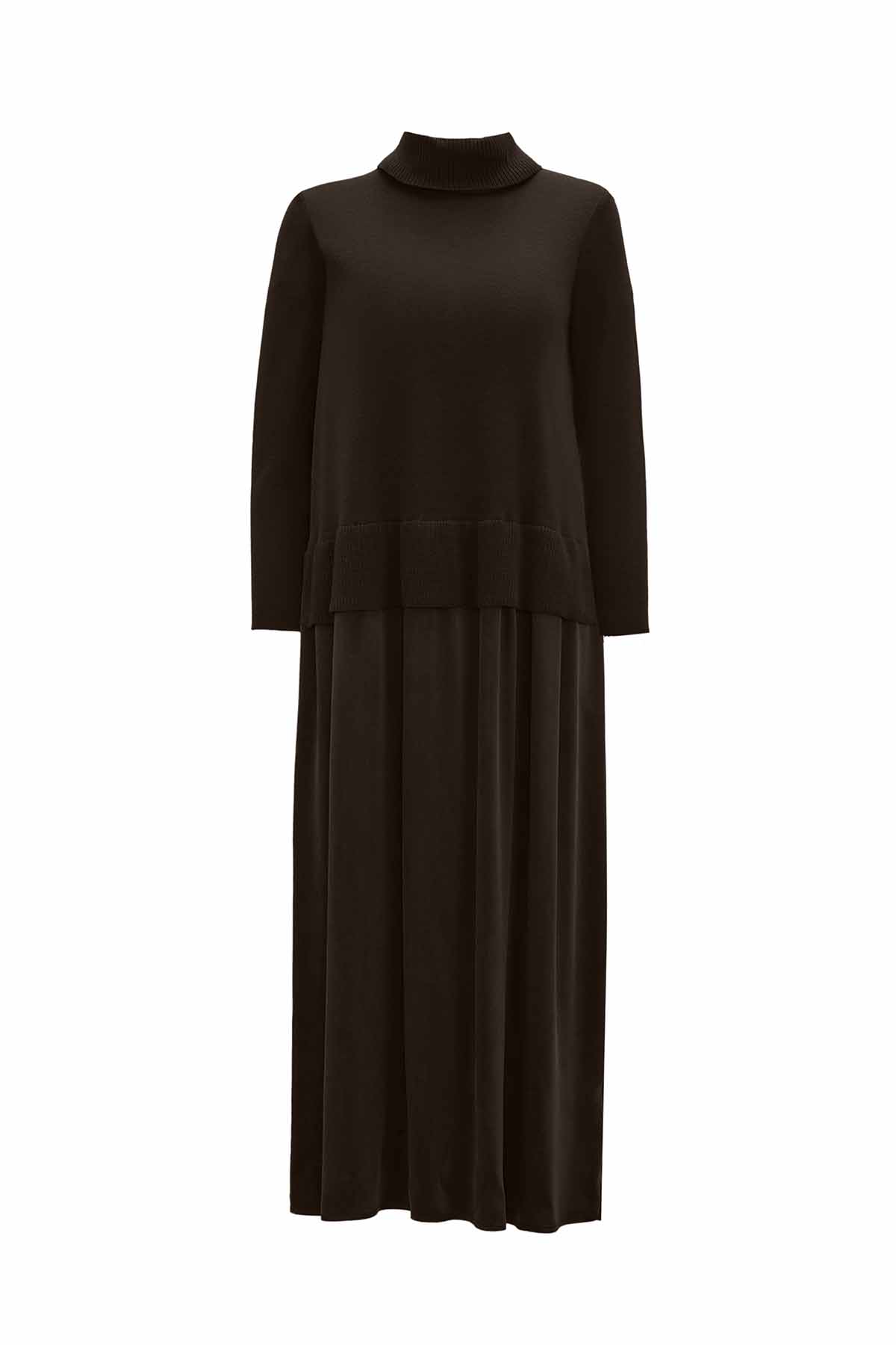 The Knit Cupro Burgundy Dress stands out with its soft drape and elegant texture. The luxurious cupro fabric enhances the elasticity of the knit, creating a timeless silhouette suitable for both everyday wear and special occasions.