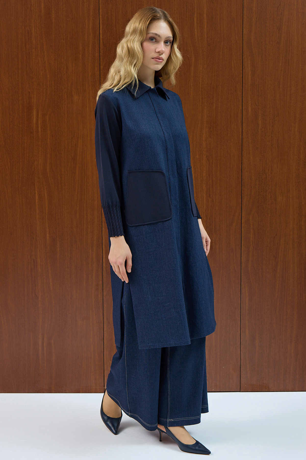 Triko Detaylı Denim Spor Kap Navy