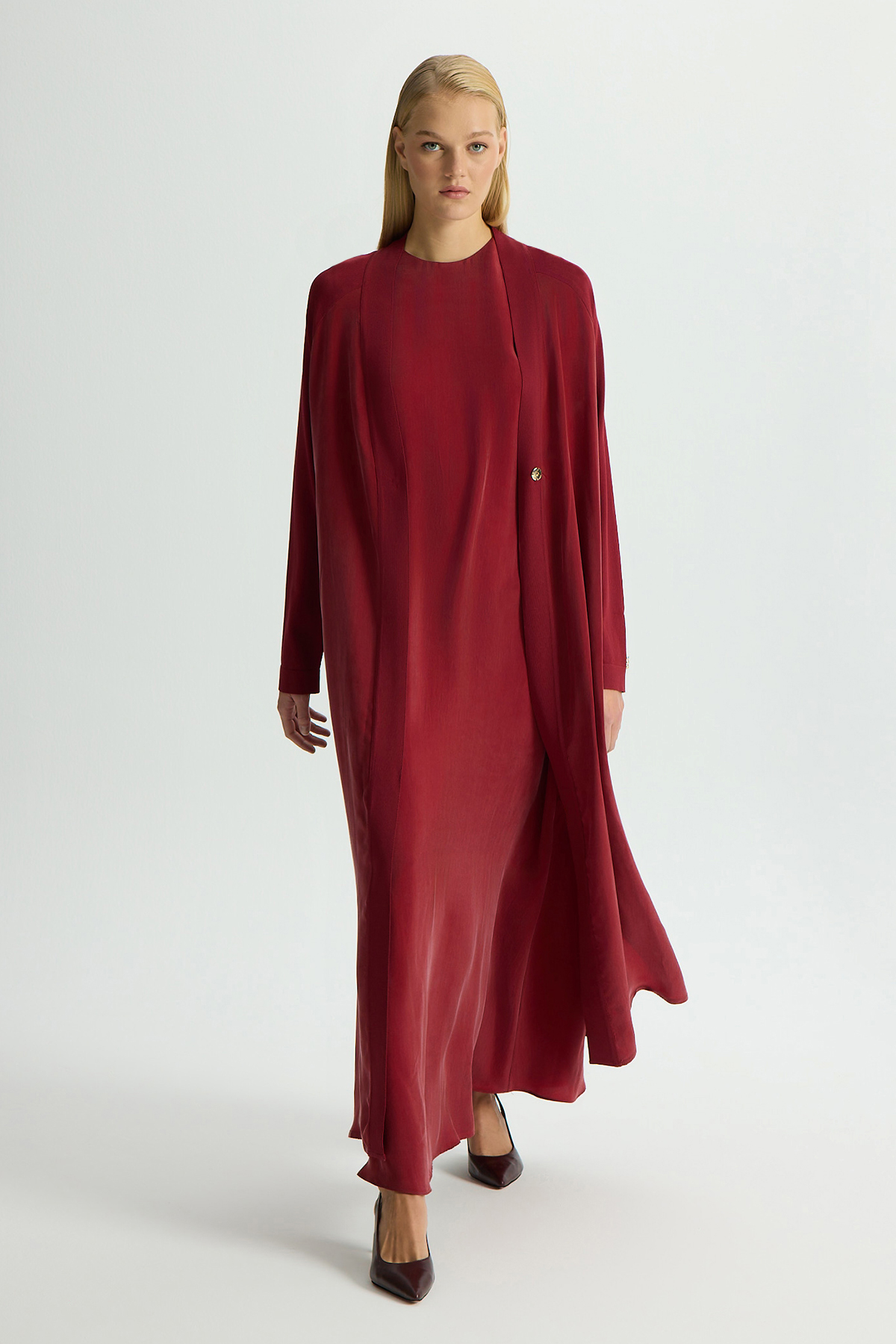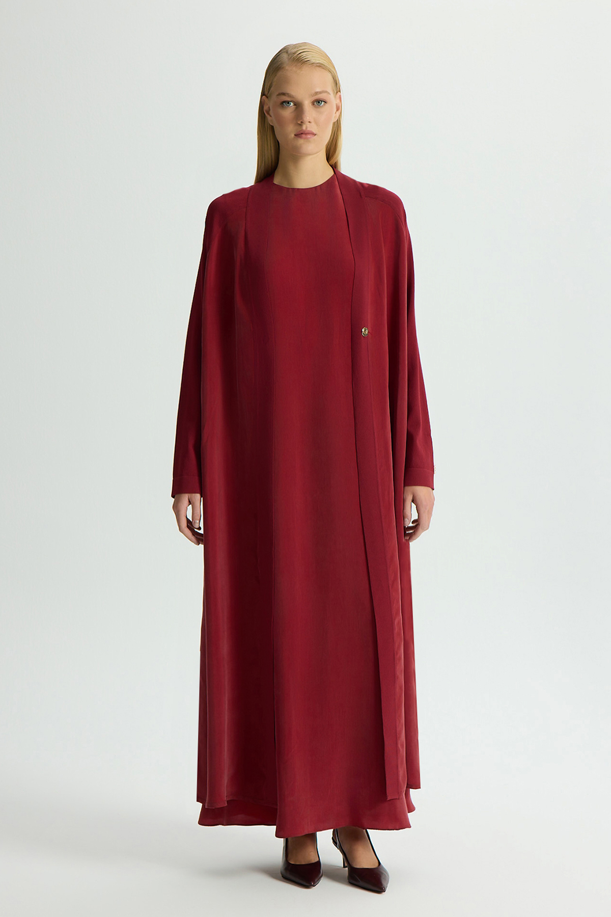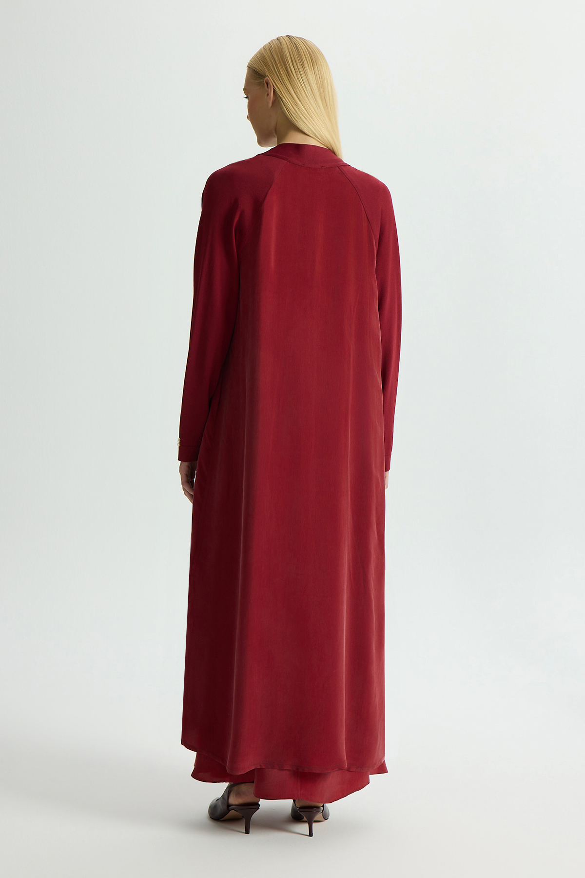 Triko Detaylı V Yaka Cupro Kap Cherry