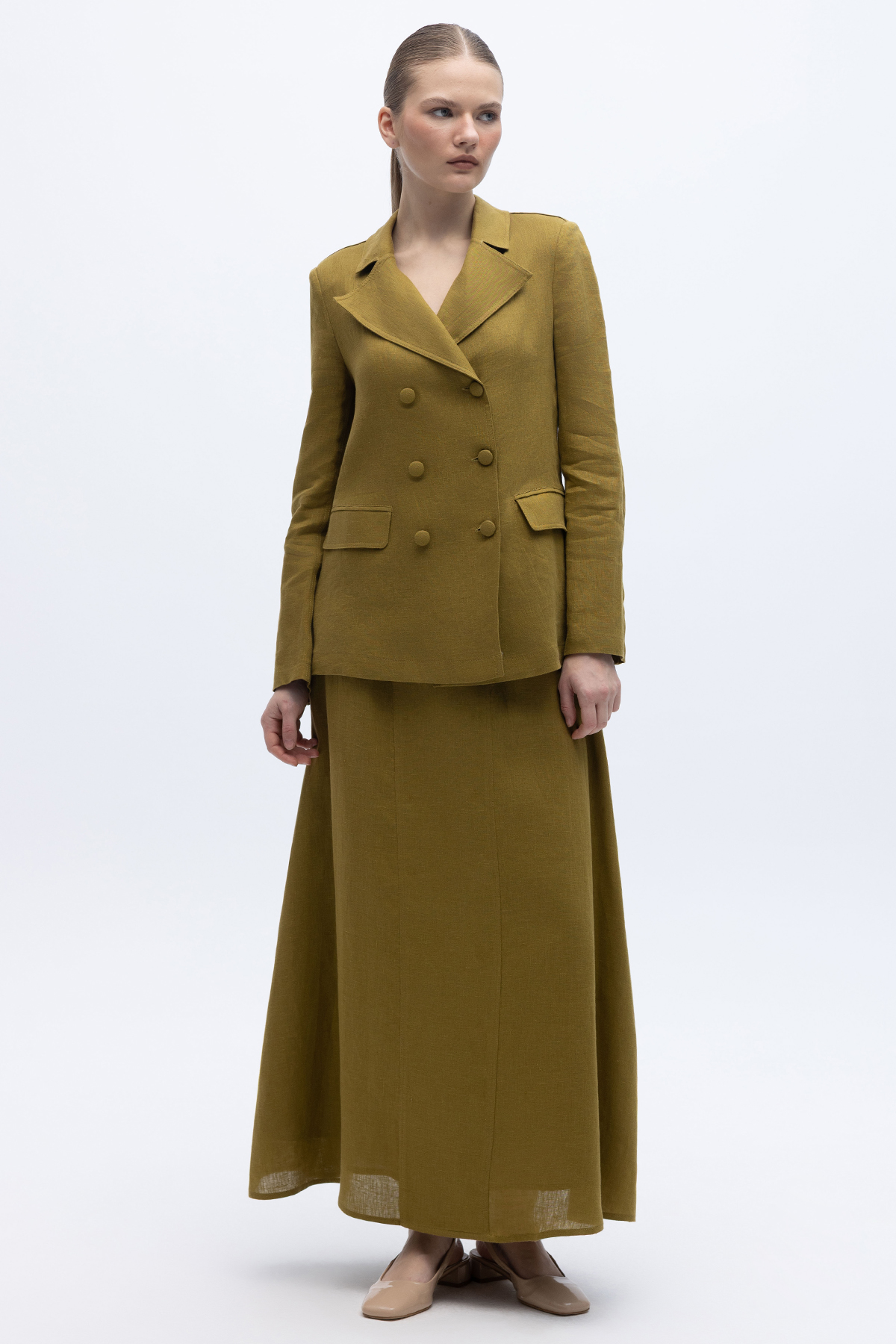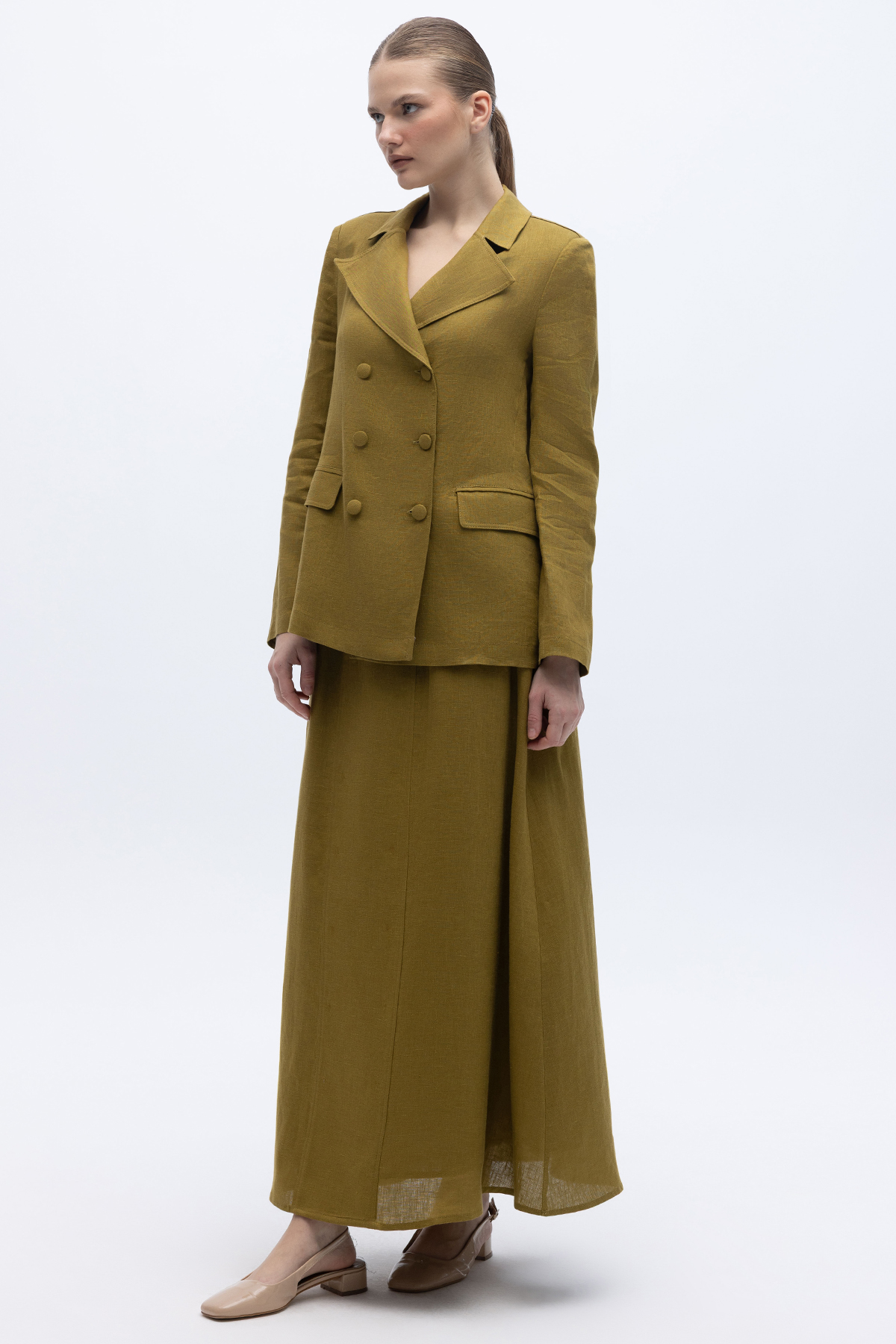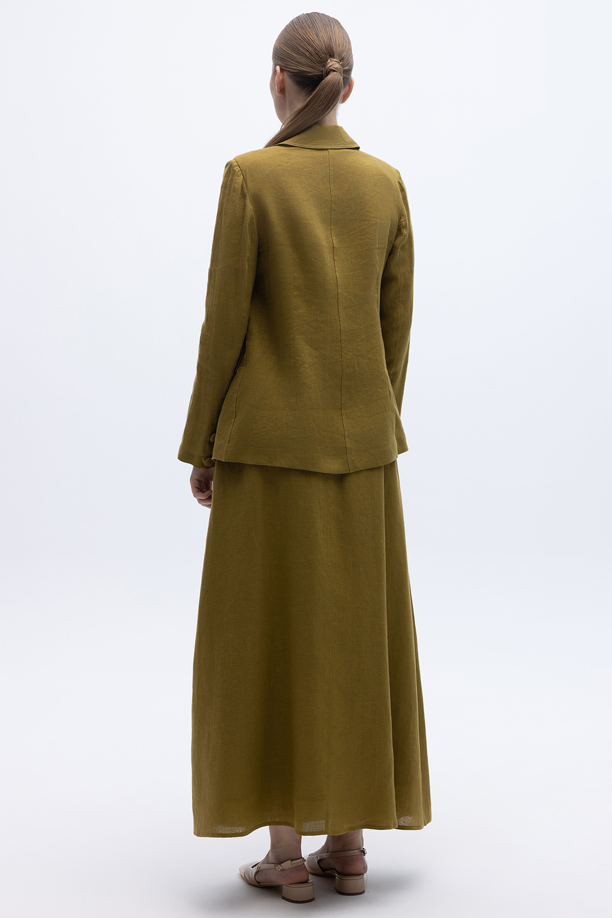 Triko Korsajlı Düz Renk Keten Etek Amber