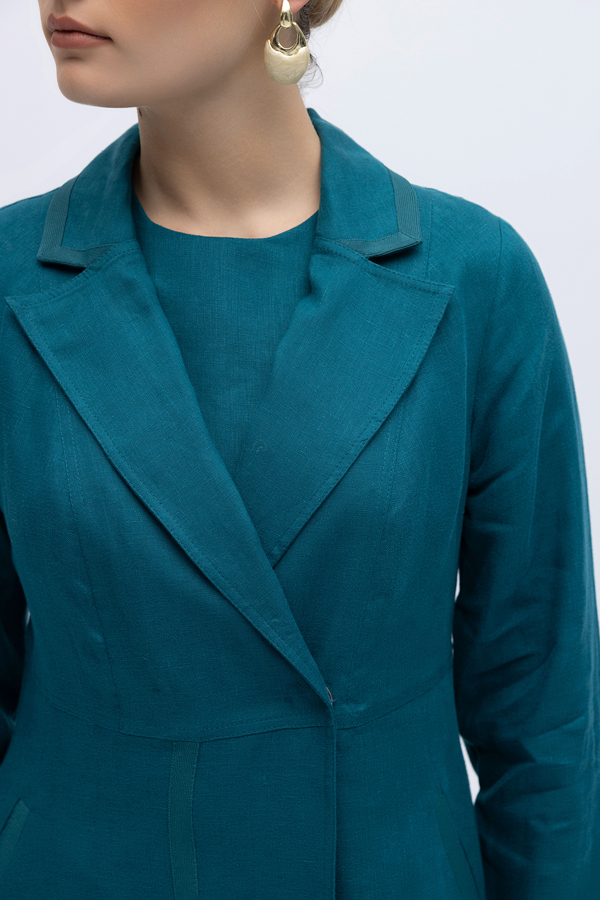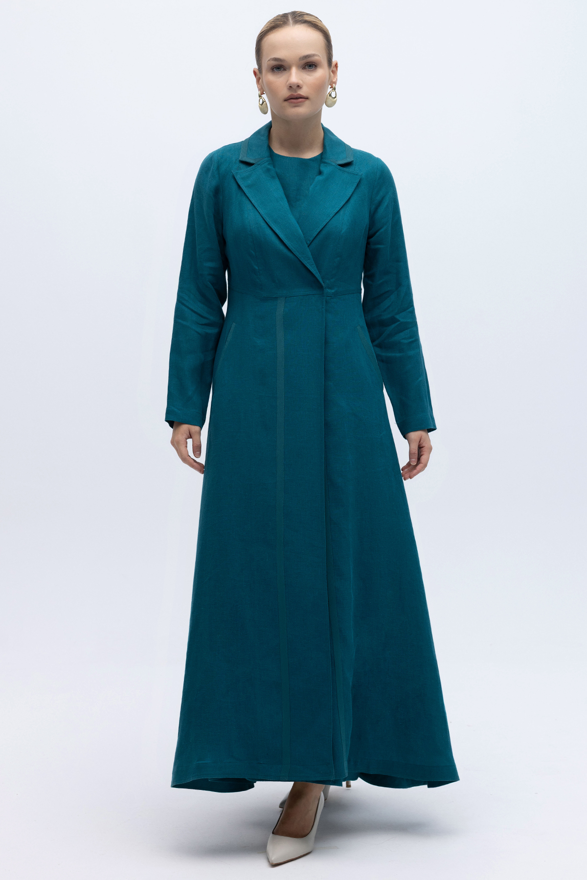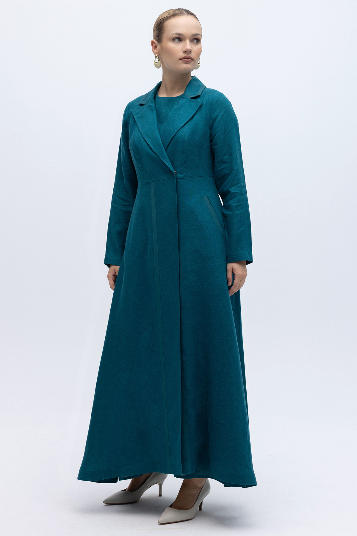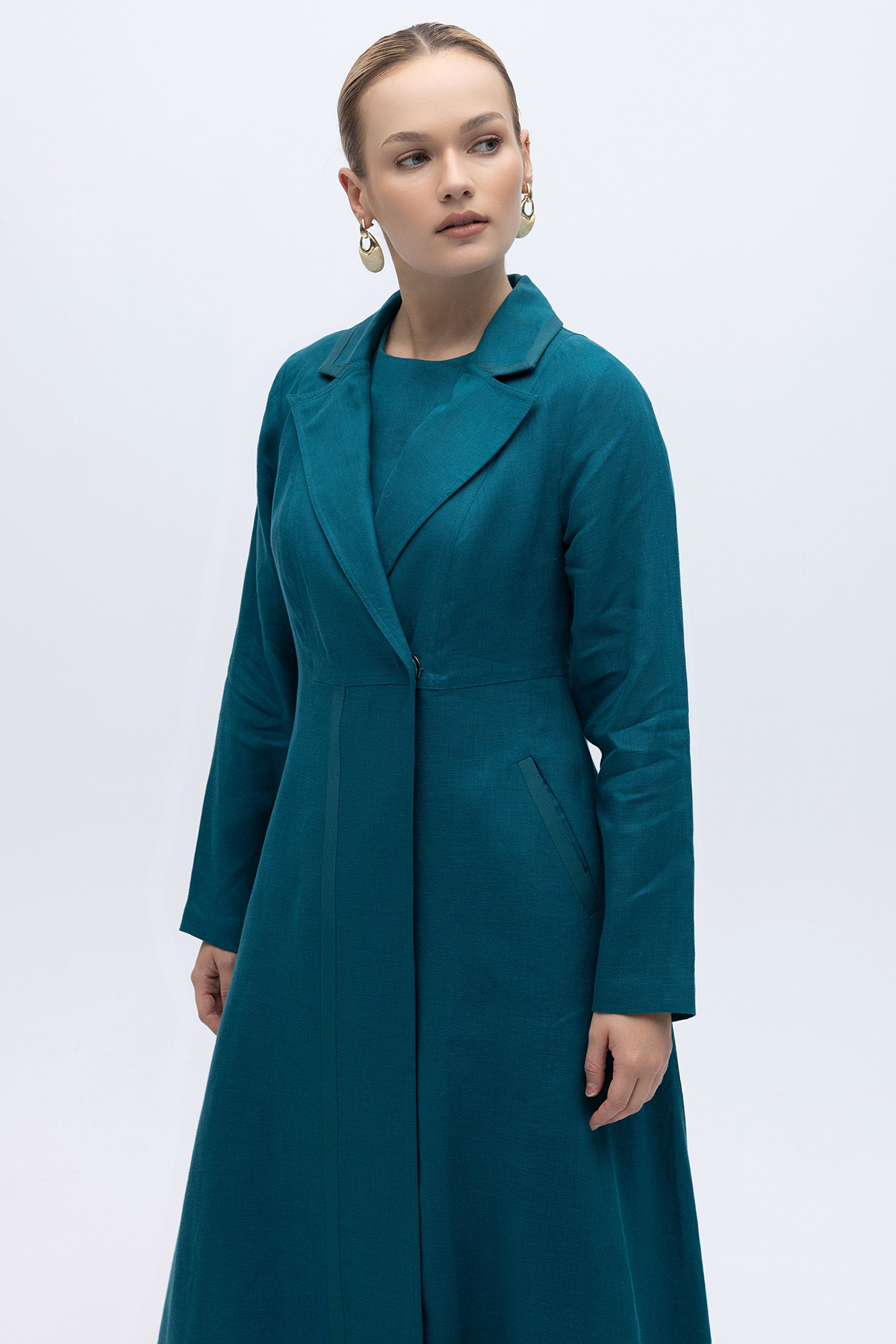 Triko Tiktaklı Uzun Keten Ceket North Sea