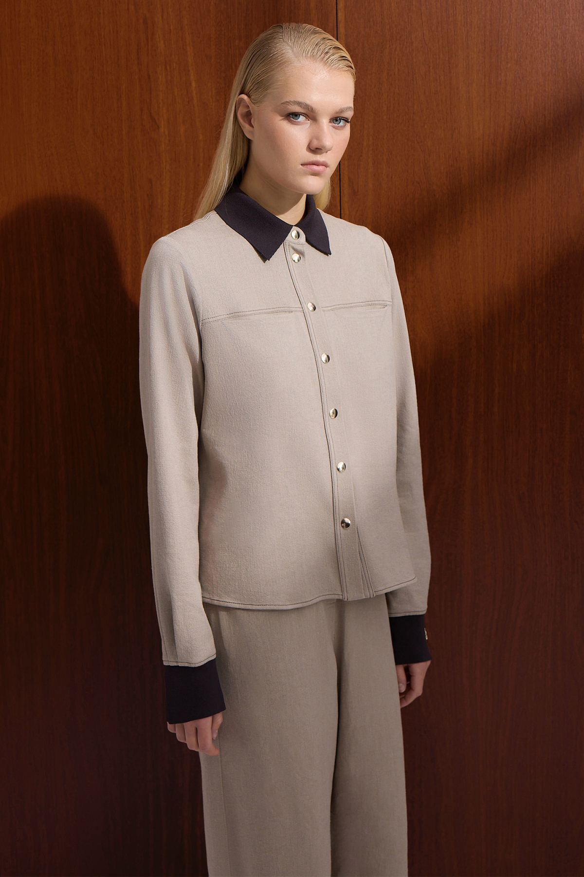 Triko Yakalı Denim Gömlek Stone