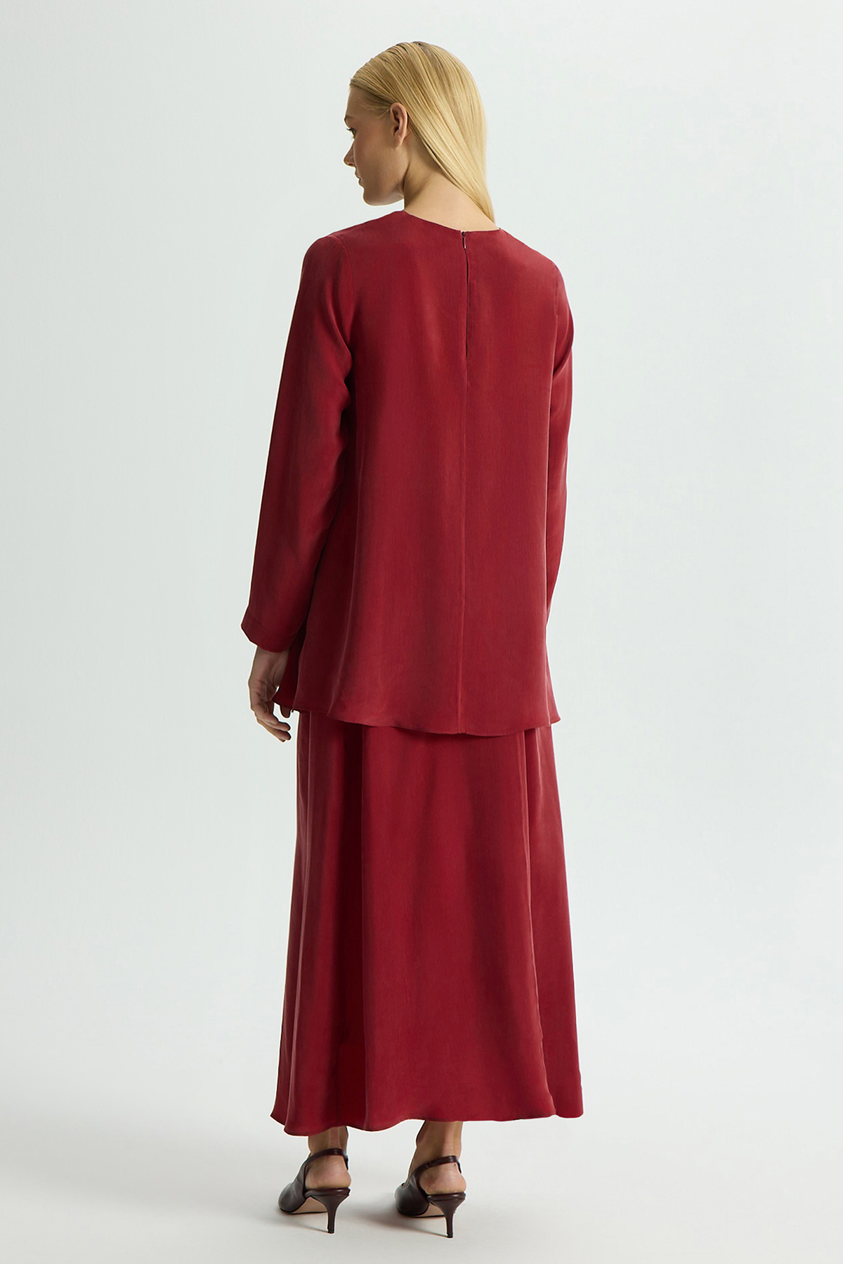 Cupro Tunic with Gathered Ankle Balloon Sleeves