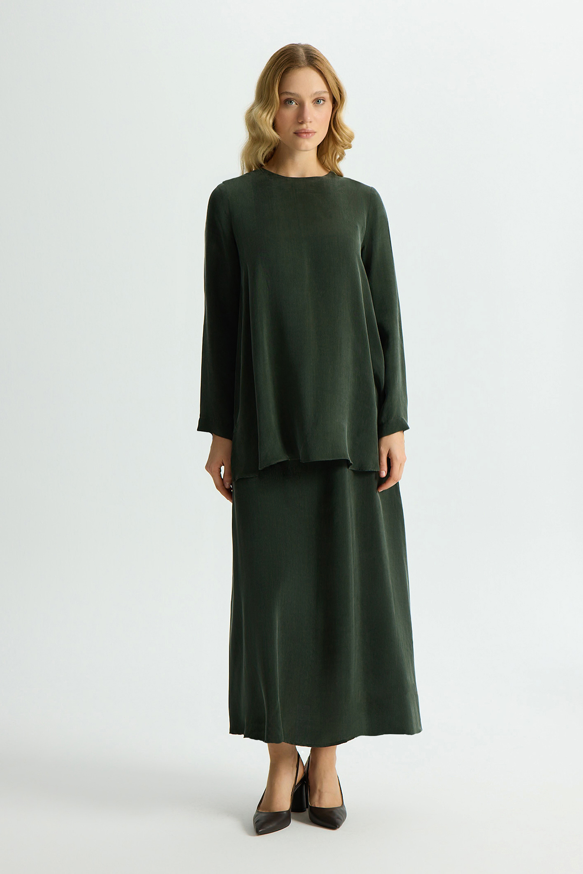 Uzun Kollu Cupro Tunik Haki