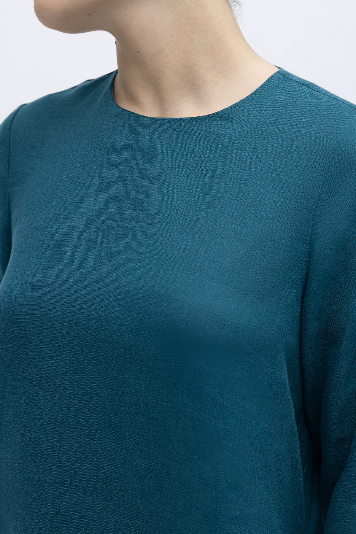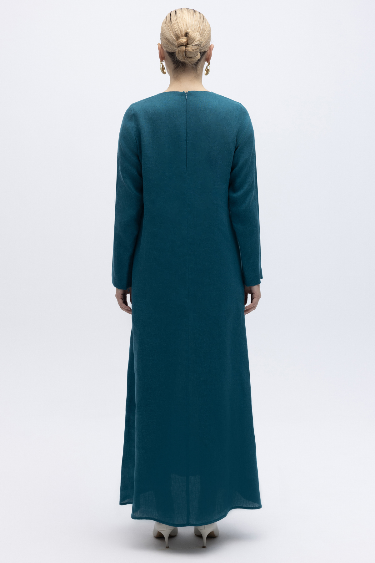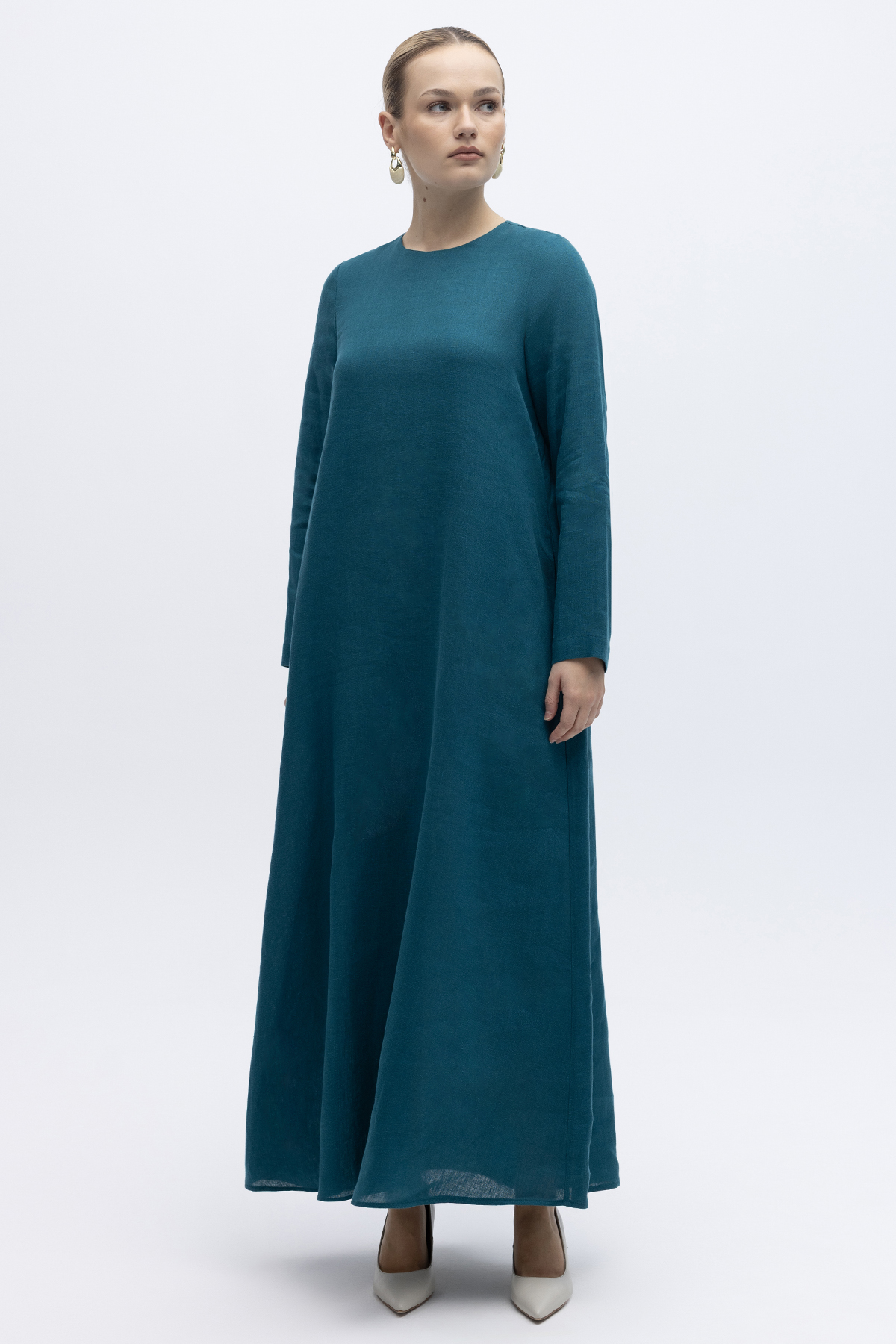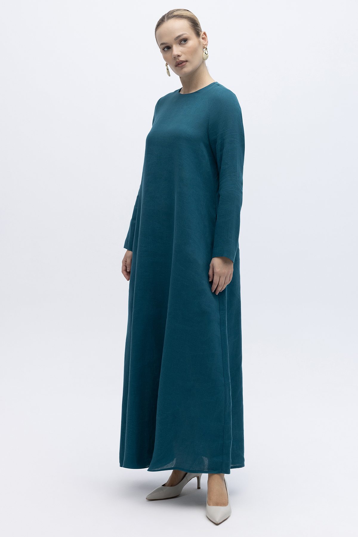 Uzun Kollu Düz Renk Keten Elbise North Sea