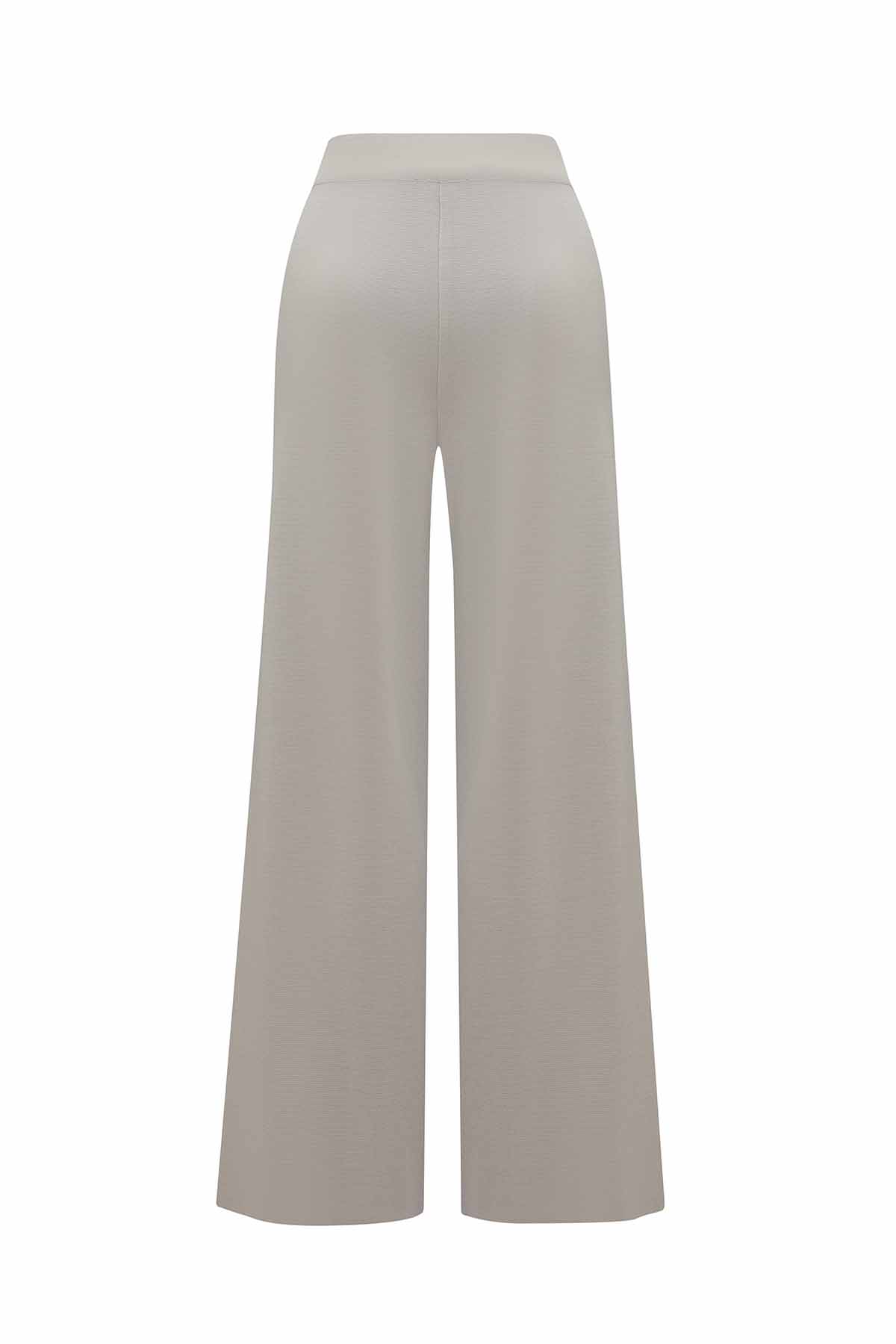 The wide leg knit pants in a refined stone hue combine comfort and minimal elegance. Crafted from soft knit fabric, they offer a flowing silhouette that flatters every shape. Perfect for everyday wear or office looks, this versatile piece from Miss Dalida adds effortless sophistication to your wardrobe.