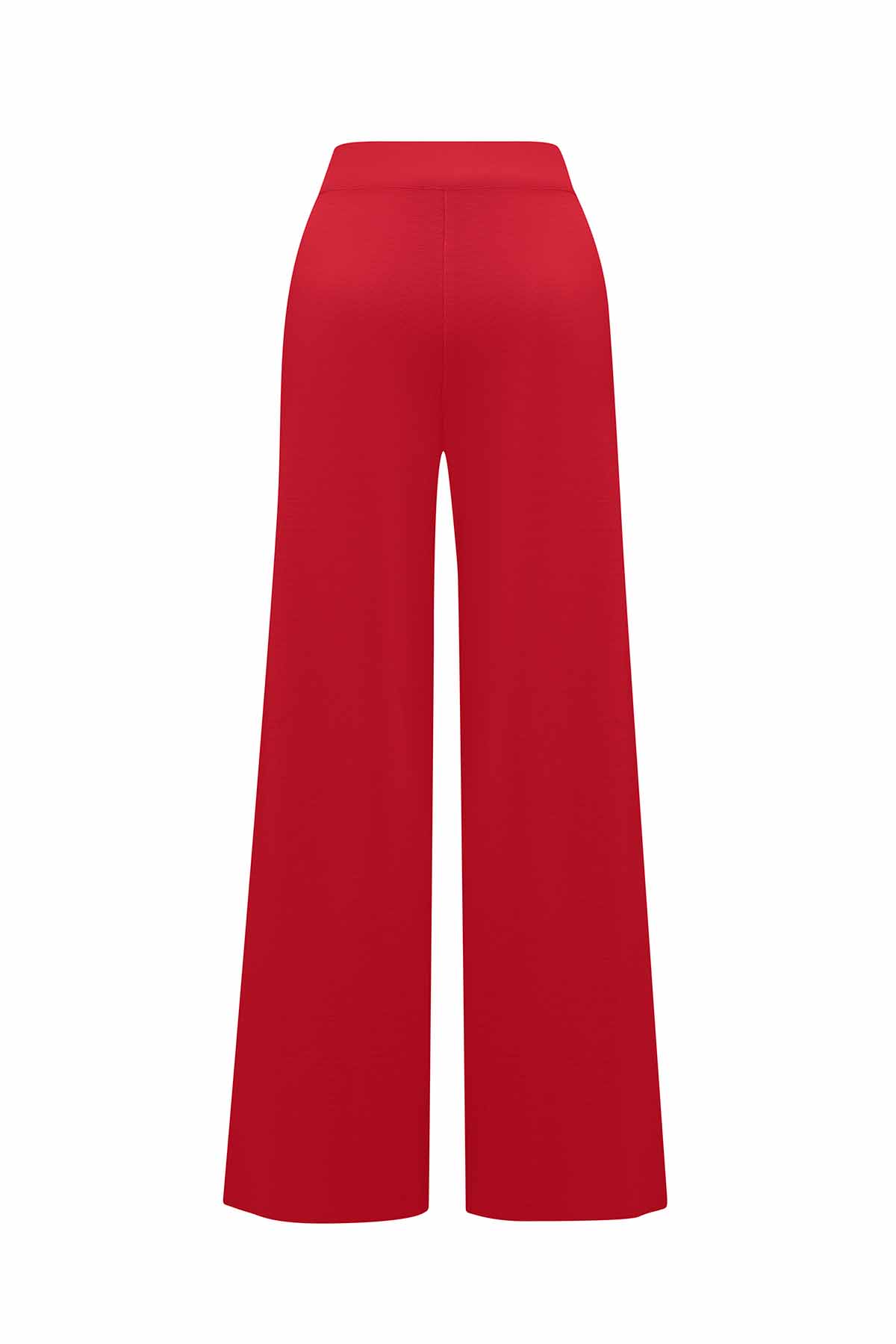 The Wide Leg Red Knit Pants feature a relaxed wide-leg silhouette for modern comfort. Its soft knit fabric ensures all-day wearability. The vibrant red color pairs effortlessly with various tops and accessories, ideal for both casual and office looks.
