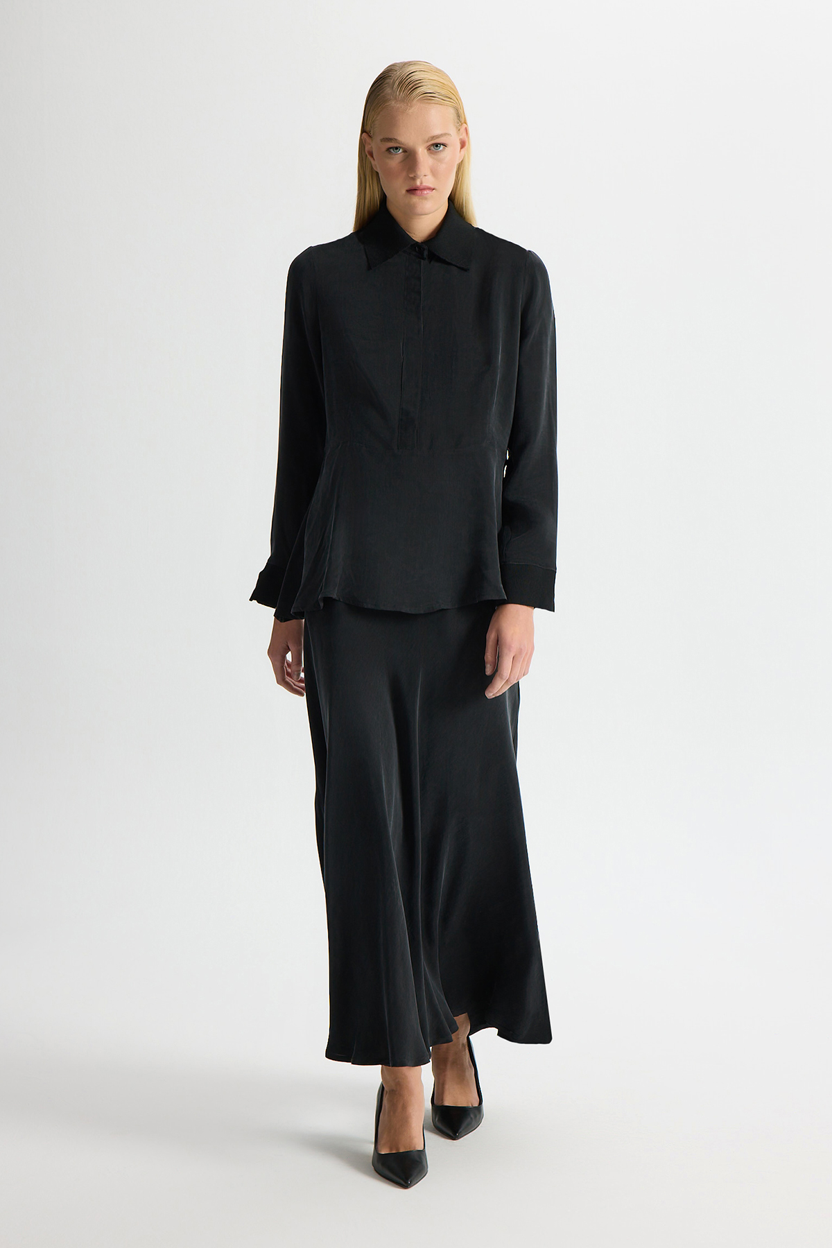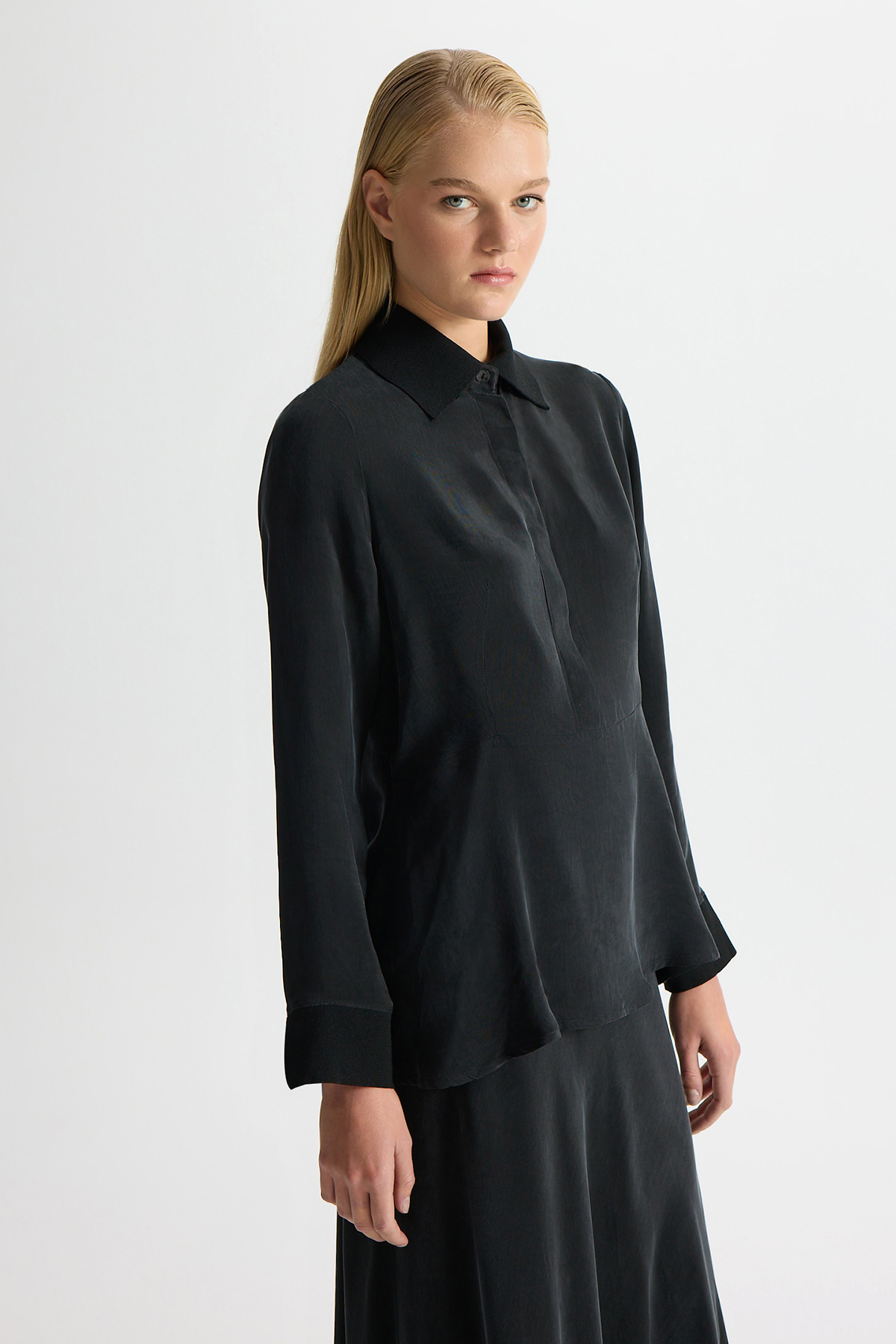Cupro Tunic with Gathered Ankle Balloon Sleeves